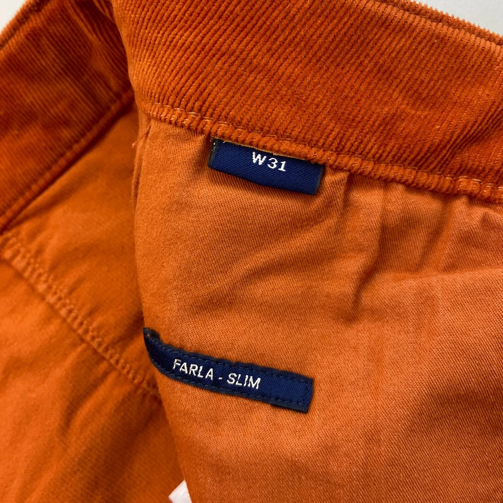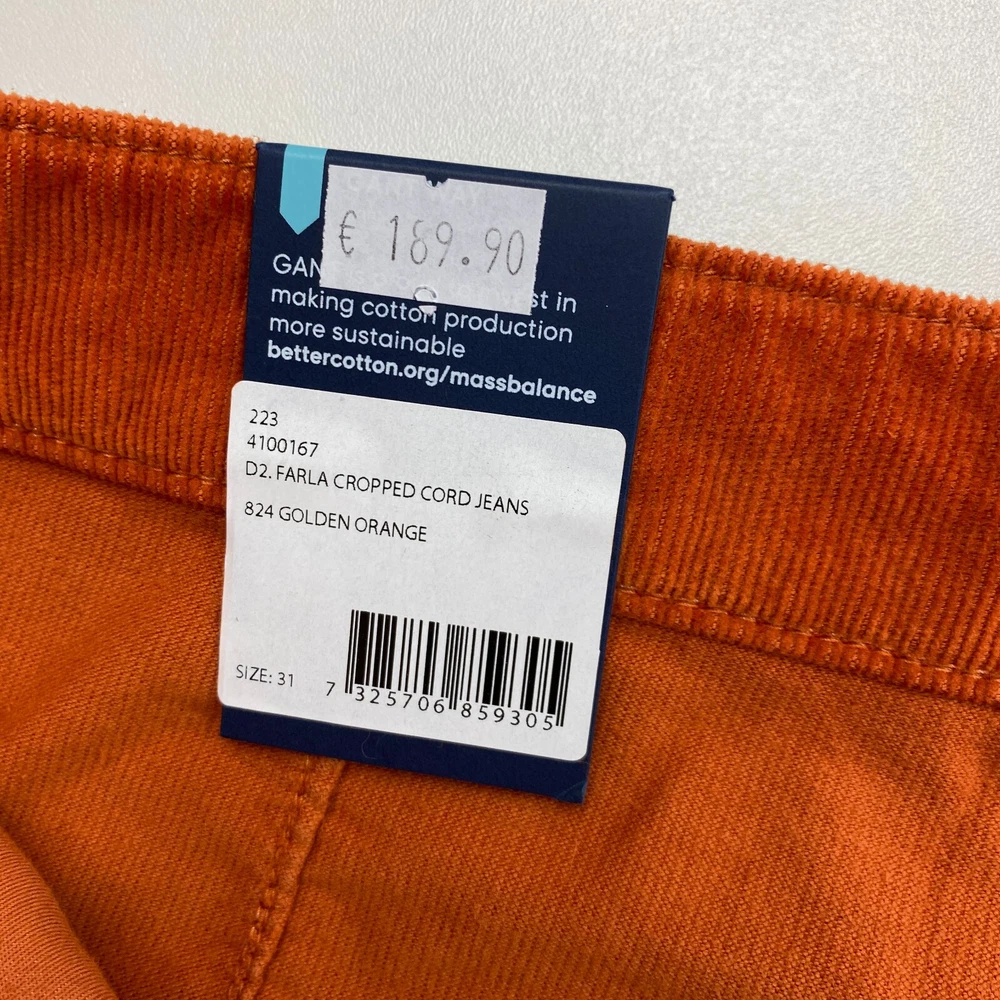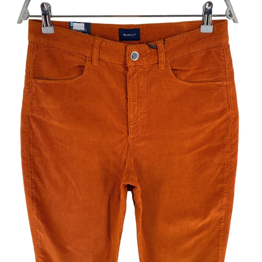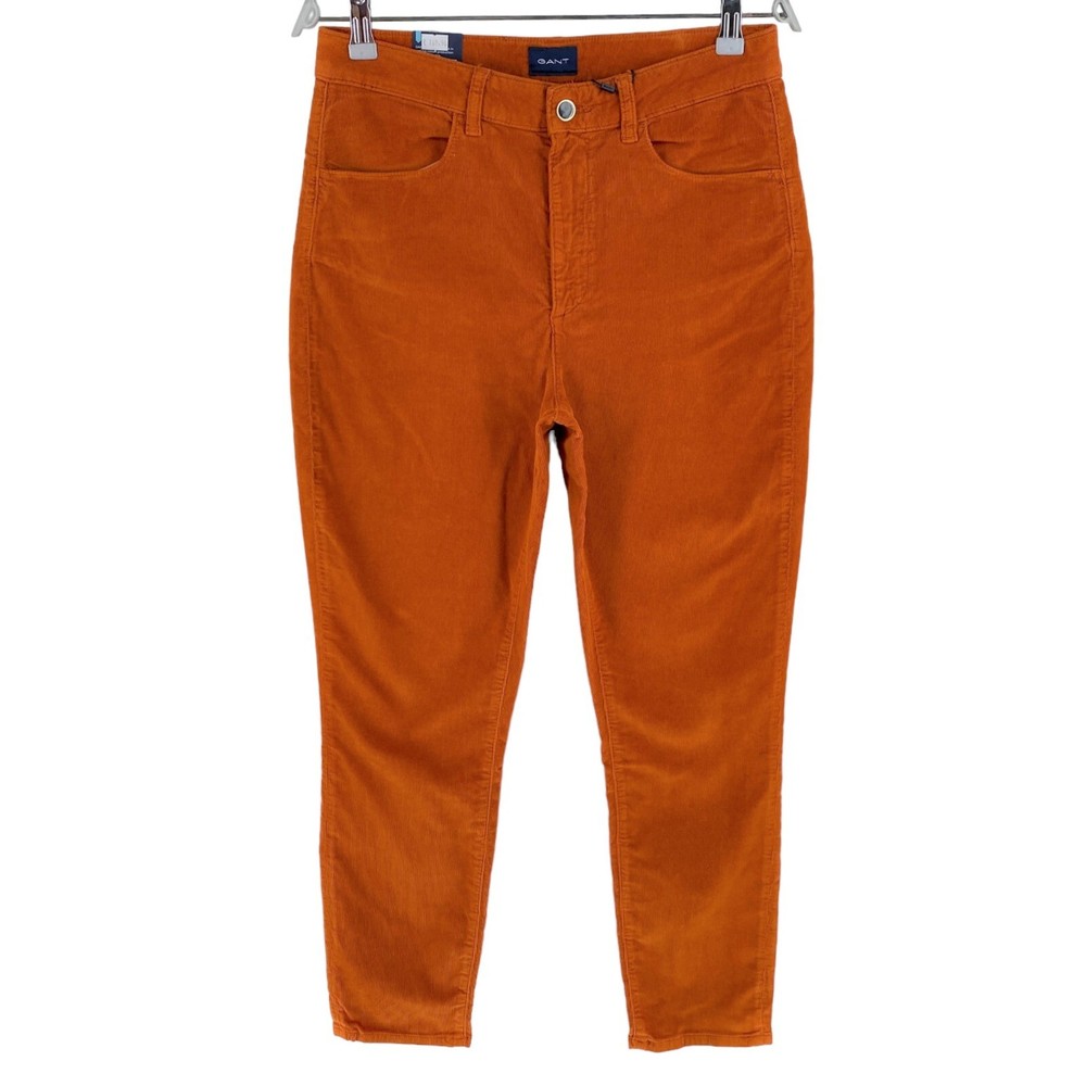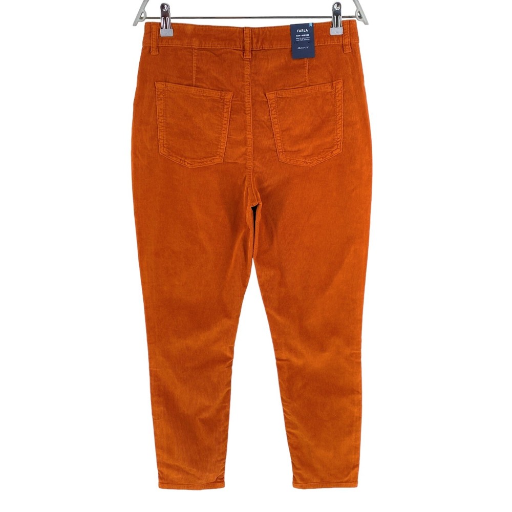 GANT Women Dark Orange FARLA Corduroy Slim Fit Cropped Jeans Size W31 This product data sheet is originally written in English. KAMPE RA37 KAMPE RA37 Closure Zip Size 31 Waist Size 31 in Material Cotton Material Elastane Material Lyocell Fabric Type Corduroy Accents Button Accents Logo Accents Zip Colour Orange Vintage No Rise Mid (8.5-10.5 in) Brand GANT Fit Slim Size Type Regular Type Jeans Department Women Style Cropped Features Pockets EAN Does not apply