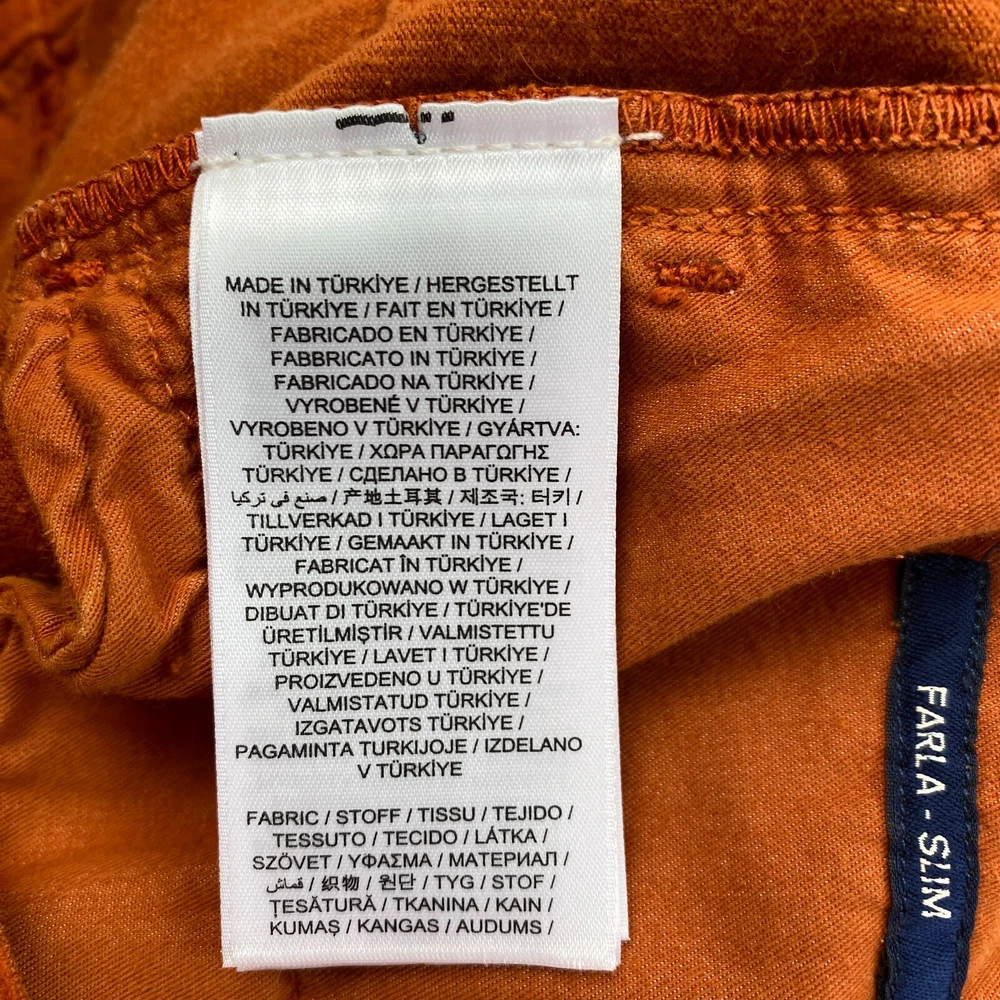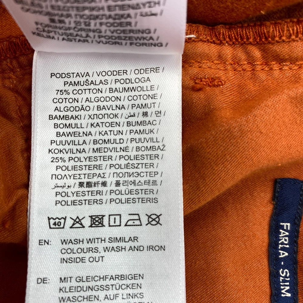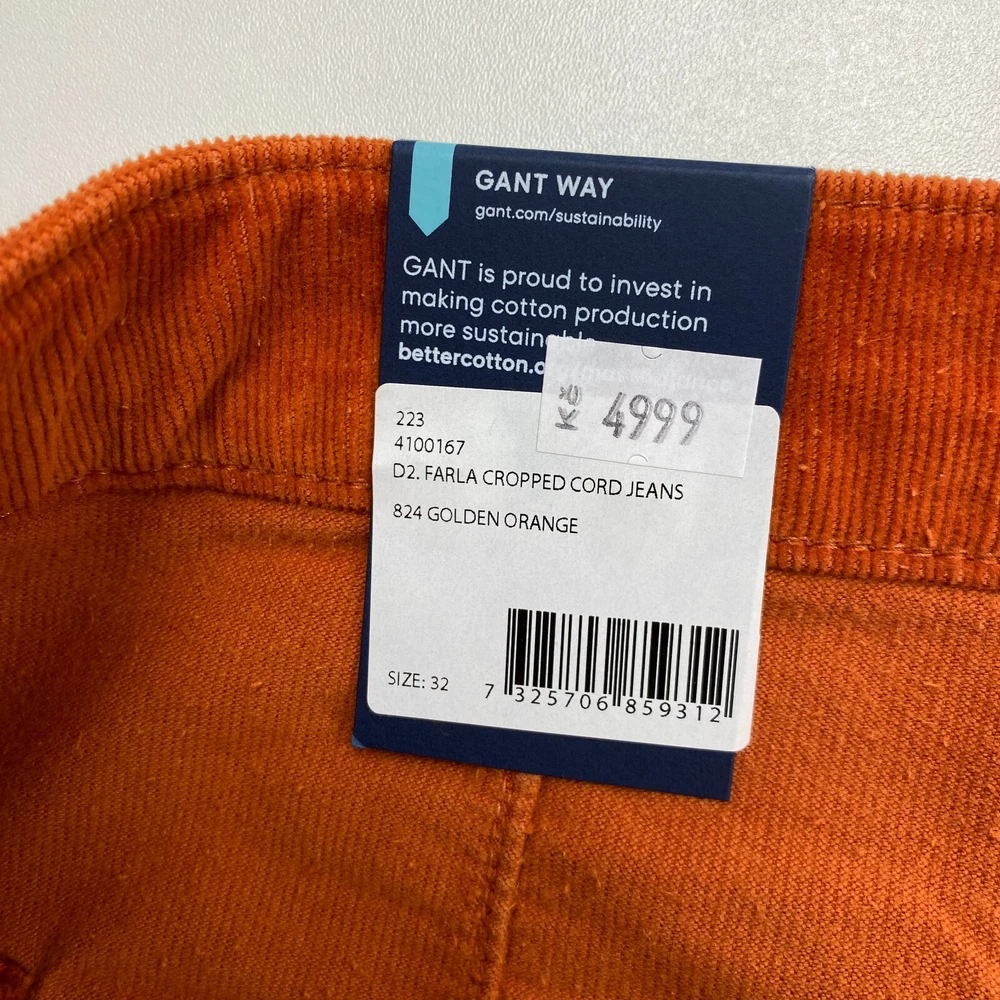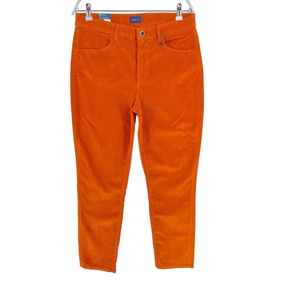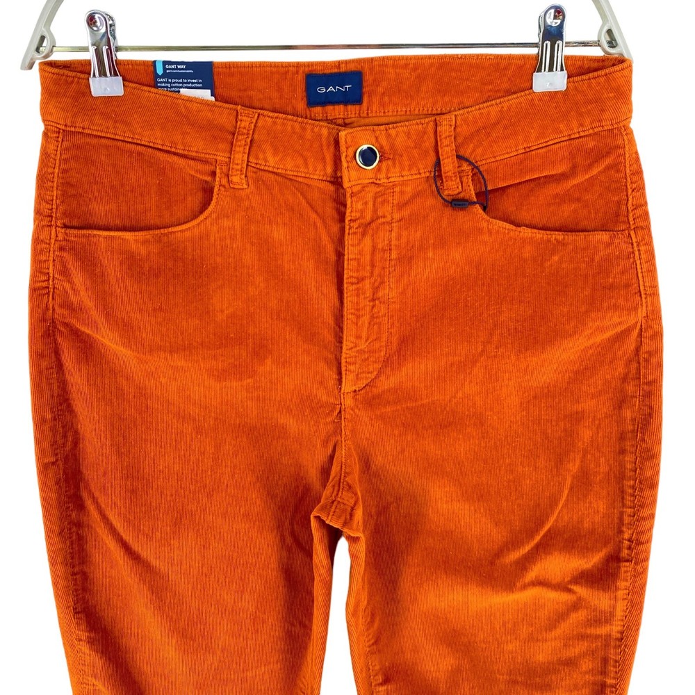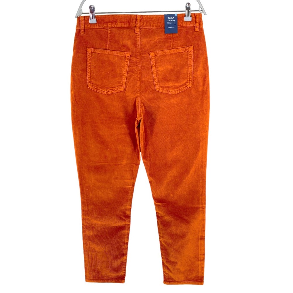GANT Women Dark Orange FARLA Corduroy Slim Fit Cropped Jeans Size W32 This product data sheet is originally written in English. KAMPE RA37 KAMPE RA37 Closure Zip Size 32 Waist Size 32 in Material Cotton Material Elastane Material Lyocell Fabric Type Corduroy Accents Button Accents Logo Accents Zip Colour Orange Vintage No Rise Mid (8.5-10.5 in) Brand GANT Fit Slim Size Type Regular Type Jeans Department Women Style Cropped Features Pockets EAN Does not apply