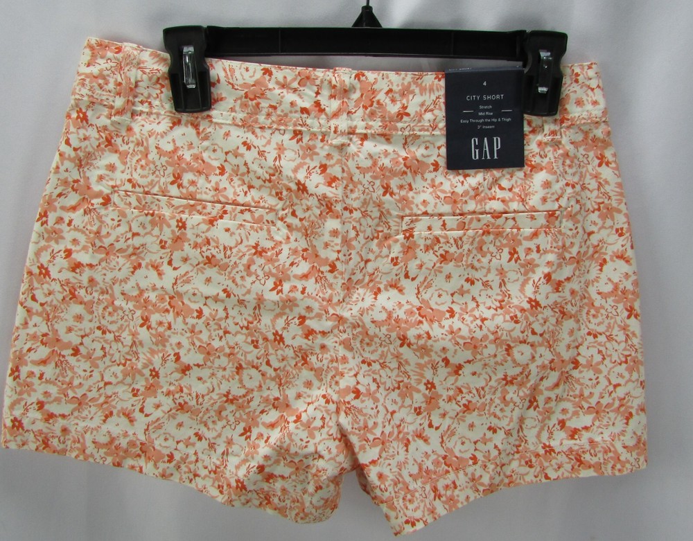 GAP Women's City Short Orange Floral Print 3" Inseam Mid Rise NWT GAP city short fits easy through the hip and thigh White and orange colorful floral print Pockets: 4 pockets: 2 back, 2 front 97% Cotton, 3% Spandex Size 4 - measures 30" at the waist, 3" inseam, 10" rise Size 18 - measures 40" at the waist, 3" inseam, 11" rise Please Visit Our Store – We add new items every day and carry something for everyone. Always a big variety at Lemstar-Deals! RETURNS: Please read descriptions. Questions are welcomed and we try to answer all inquiries ASAP. Returned items must be returned in the same condition they were sent. Clothing sent new with tags must be returned with tags still attached and with no signs of wear on the garment to be eligible for a refund. Return postage is the responsibility of the buyer SHIPPING: If you would like the item shipped to Puerto Rico, Hawaii, or Alaska, or other US addresses outside of the 48 states, please contact us for the shipping cost. Intl shipping calculated by location PROBLEMS: We like happy customers. If there is any issue with your order, please contact us and allow us to make it right for you LOC: T-39-6/7