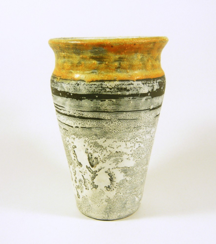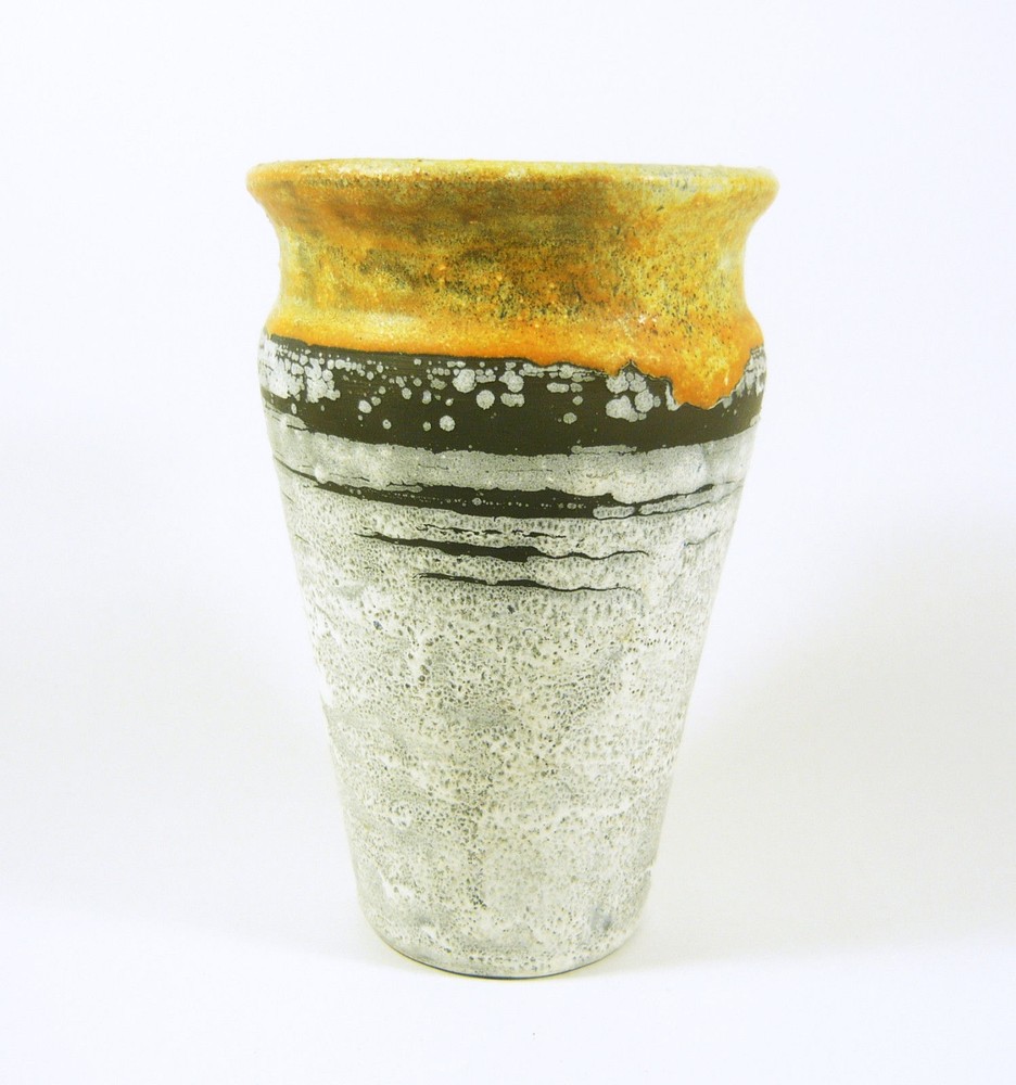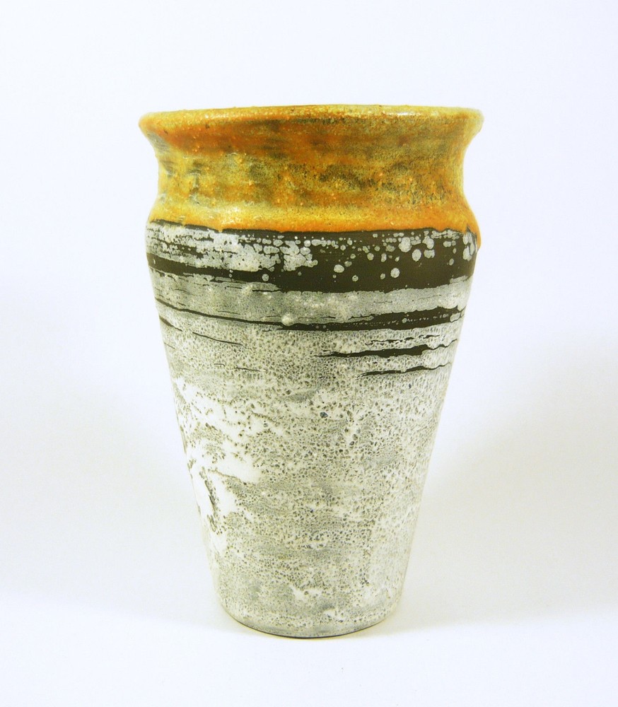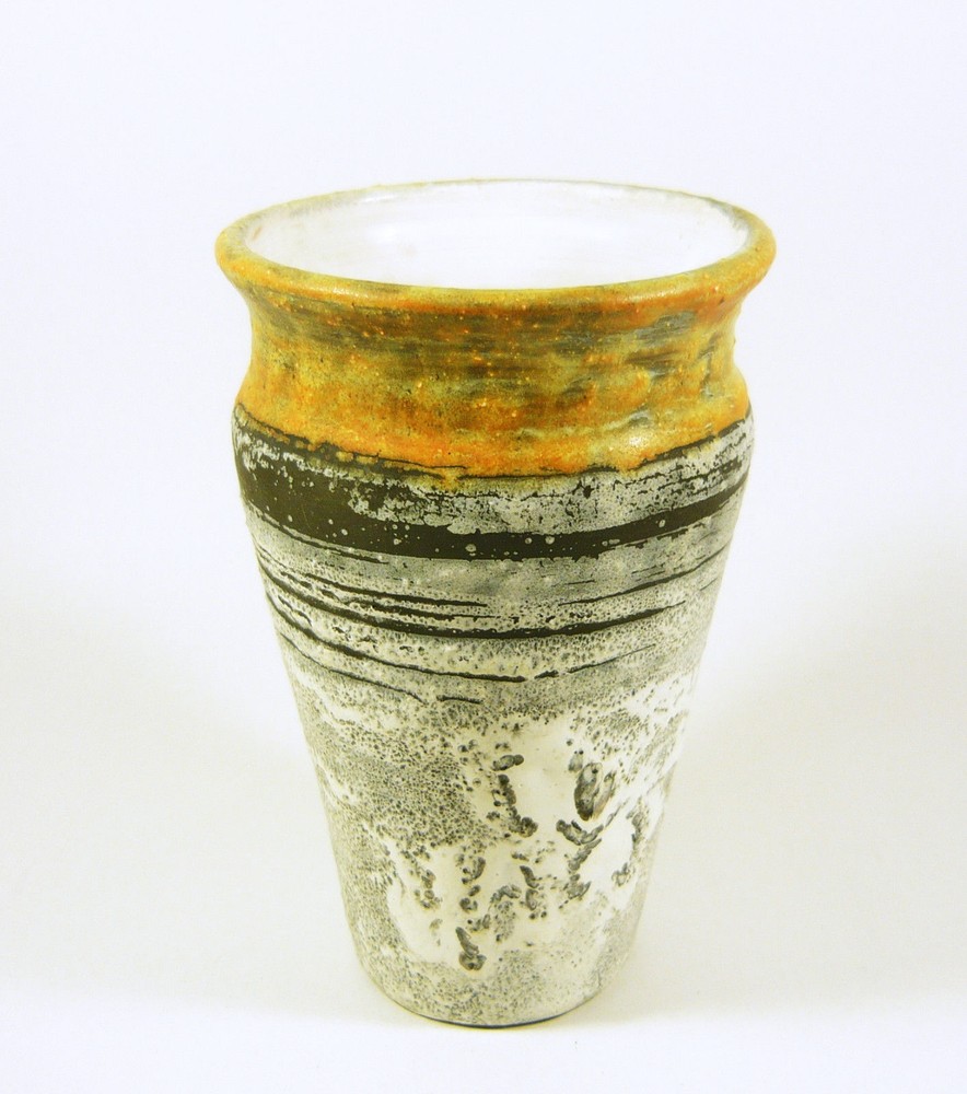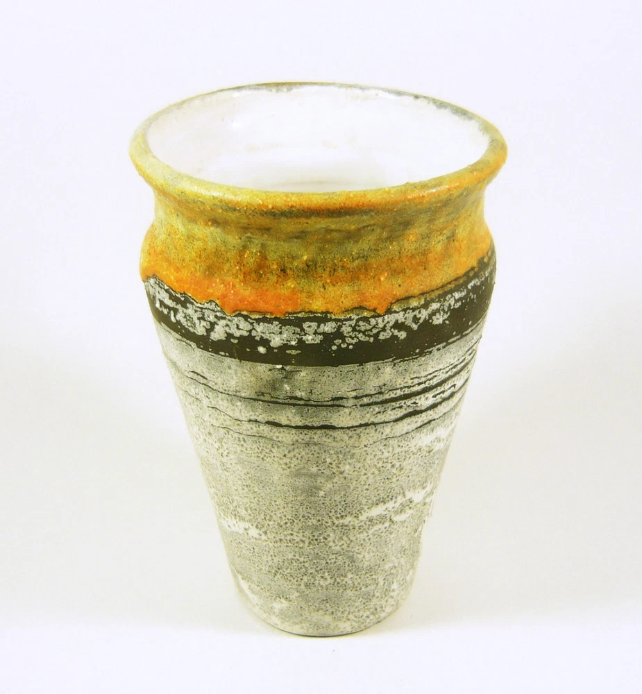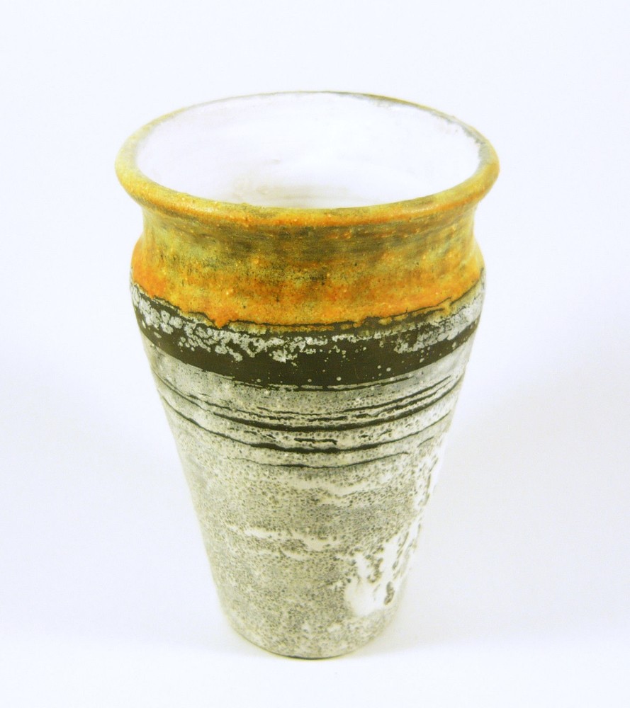 You are bidding on a GORKA LIVIA, ORANGE & GREY RETRO VASE 7", 1960'S ART POTTERY ! Year : 1960's Mark / Sign : Gorka Livia (GL) Condition : Excellent, No Chips,No Cracks or Repairs ! Size CCA. Inches / Centimeters Height : 6.97" / 17.7 cm. Diameters : 4. 57" / 11.6 cm. Check out my e-bay store for more Gorka Livia & Gorka Géza Art Pottery Items : GORKA LIVIA CERAMICS ! Click on the link that takes you to my store page of more Gorka Livia Items ! Please add USD 50 for shipping worldwide. Gorka Lívia (Nógrádverõce, 5 March, 1925) Took a certificate as master potter in 1947. Her master was her father, Géza Gorka. A free-lancing artist, she worked in the Gorka workshop in verõce until 1959, and in her own studio since then. The source of her art is nature, her typical objects are large asymmetrical vessels, idols, fish, birds, stones. She adopted the pre-wheel archaic technique of working in clay. Creates unique artefacts, prefers series and groups of objects. Makes high-fired items of her own clay bodies, often stoneware. She uses oxide-glaze, combines clay with metals frequently. The palette of her works of powerful plasticity is reserved. Member ot the Association of Hungarian Artist (1956), The Hungarian Art Fund later MAOE (1955) and IAC, Genf. Thanks for looking and please see more ceramics in my shop!