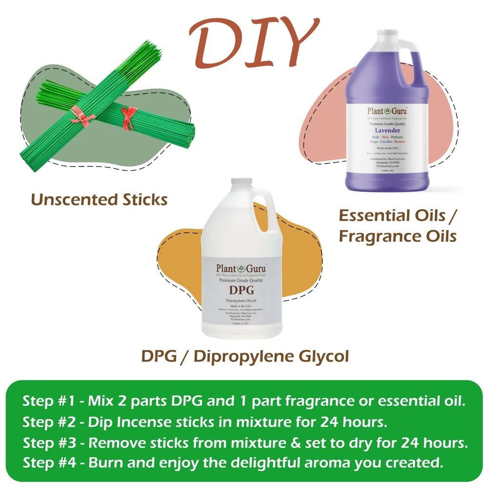 "GREEN" Unscented Incense sticks 11" No Fragrance Blanks DIY INCENSE MAKING Approximately 90-100 sticks per bundle Free Shipping Choose Amount From Drop Down Menu 100% natural unscented, incense sticks 11” ✅ 100% NATURAL - Our incense sticks are made with all natural ingredients. Joss Powder (Litsea Glutinosa) Bamboo (Bambusa Arundinacea) ✅ EXPRESS YOUR CREATIVITY - Create your own unique custom incense by simply adding your favorite essential oils or fragrances. ✅ CLEAN BURNING - NO toxic fumes - NO Burnt after smell – Fill your home with a delightful unique aroma and guests will immediately ask what's that amazing smell. Add these to your home décor accessories, your special quiet space, or just keep them on hand to burn any time. ✅ BURN TIME - Each stick burns for about 45 to 60 minutes after scent is added. ✅ INCENSE RECIPE - Mix 2 parts DPG and 1 part fragrance or essential oil - Dip Incense sticks in mixture for 24 hours - Remove sticks from mixture and let dry for another 24 hours. - Once fully dried, burn and enjoy the delightful unique aroma you created. !!! CLICK ON ANY IMAGE BELOW TO VIEW MORE DEALS AND SAVINGS !!! ⭐ ESSENTIAL OILS, FRAGRANCES & DPG ⭐ !!! WE ALSO CARRY A HUGE VARIETY OF SCENTED INCENSE !!! ⭐ ⭐ TOP 10 BEST SELLERS ⭐⭐ ⭐ ⭐ TOP 5 FRUIT SCENTS ⭐⭐ ⭐ ⭐ TOP 5 FLORAL SCENTS ⭐⭐ ⭐ ⭐ EARTH & WOOD ⭐⭐ ⭐ ⭐ EXOTICS SCENTS ⭐⭐ ⭐⭐⭐ HOLIDAY SCENTS ⭐⭐⭐ ⭐ ⭐ BOGO LISTINGS ⭐ ⭐ 500 - 11" Sticks / 100 - 11" Sticks / 50 - 11" Sticks / 25 - 11" Sticks 30 - 19" Sticks / 15 - 19" Sticks / 2" Backflow Cones / 1" Charcoal Cones ⭐ ⭐ CUSTOM SET ⭐ ⭐ Build Your Own Custom Set Need bigger sticks? Click on the image below to view our Jumbo 19 inch incense sticks listing. We Also Carry Undiluted Fragrances Oils? Click on the link below to view our full list of fragrance oils L I N K > > > Catalog #1 (A - K) L I N K > > > Catalog #2 (L - Z) L I N K > > > FRAGRANCE OILS GALLON 8 lbs. BULK WHOLESALE L I N K > > > VIEW OUR FULL LINE OF FRAGRANCE OILS HERE Check out our store for Pure Aromatherapy Essential Oils LINK >>> 100% Pure Essential Oils, Therapeutic Grade. LINK >>> Pure Essential Oil Blends LINK >>> Carrier Oils / Pure Plant Oils LINK >>> 100% Pure Butters Why Plant Guru ? We source the finest quality ingredients and supplies from ethical producers worldwide. We supply all of our products at market leading prices with no gimmicks. We never sacrifice quality for price. The customer is always right and should always be treated the way our customer service reps would like to be treated. Appreciate every customer, large and small and do your best to service them. About Plant Guru Our business was born online offering quality essential oils at a fair price. No advertising, No marketing plan, No multi pyramid pricing. This allows us to pass on a huge savings to our customers. We provide quality essential oils at the most affordable prices. From our experience if you stick to your principles, the business will take care of itself. These beliefs have allowed us to do great things. Our Mission Plant Guru is a small family ran business with a passion for essentials. "Our business revolves round this passion" As essential oil users in our personal life, We were tired of the multi marketing companies. The prices for a small 15ml. bottle were getting is ridiculous. Everyone should be able to experience the healing power of essential oils. Shipping We ship within one business days of payment, usually sooner. *Standard Shipping takes between 3-5 business days. * We use a selection of shipping services such as UPS, FedEx, USPS etc. *Expedited shipping takes between 2-3 business days. *PLEASE PROVIDE A PHYSICAL ADDRESS. View more great items