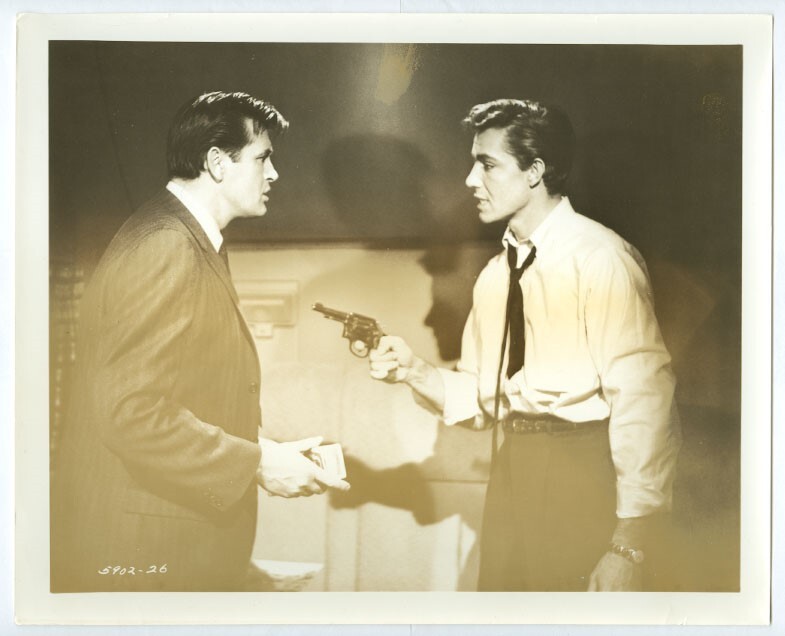 8" x 10" movie still photograph of Gregg Palmer and Don Sullivan in the 1959 film "The Rebel Set." Unknown if this is a first or second generation photo. EXMT or better condition with light wear, no markings on the back. We combine shipping - there is no additional charge for multiple purchases in one order.(64157) Payment must be received within 10 days of purchase. SATISFACTION GUARANTEED! We guarantee the authenticity of all items we sell for life. PLEASE SEE OUR OTHER LISTINGS! **OUR BUSINESS CONTINUES TO GROW THROUGH THE RECOMMENDATIONS OF OUR CUSTOMERS. YOUR REFERRALS ARE GREATLY APPRECIATED!** Powered by SixBit's eCommerce Solution