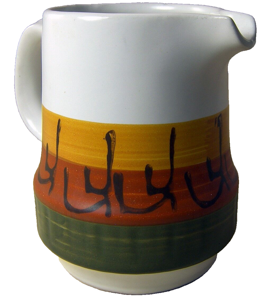 Vintage creamer - small cream pitcher - from Casual Ceram, in the Galaxy mid-century modern pattern Made in Japan White with oranges and brown Size: 3.75 inches tall Condition: Excellent, no chips or cracks I have more dishes, and other great things. Please see my other listings.