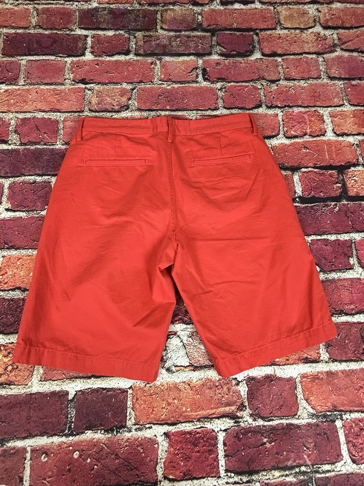 Gap Khakis Mens Shorts in green, size 36, feature a cargo style with pockets and belt loops. Made of 100% cotton, these mid-rise shorts have a zip closure and are machine washable. Perfect for summer, fall, and spring, they offer a regular fit and have a 10-inch inseam. A versatile and comfortable choice for men's casual wear.