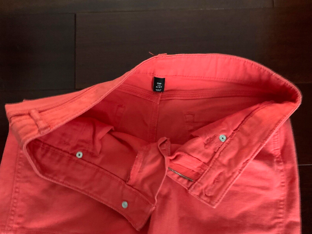 **Please do not copy our auction, photos, description etc.. It is a against eBay policy and just dishonest, thank you!** ocabhng****************************** ************************* ***************************** ************************** So much better than the photos! All of our photos are taken in bright light to show the true condition, color and as much details as possible! We do not pin our clothes to make them look better, they are as seen in our 8 photos. Being shown on an adult female size 6 mannequin. Rare find at a Great Price! :) Gap Shorts Mid Rise Coral /PinK Pants with a measured 31" Waist, Flat Front Chino, Women's Size 4 27 read tags, great price. Comes from a smoke and pet Free environment. Measurements: Waist: 31 inches Hips: 35 inches Inseam: 4.5 inches Rise: 8 inches