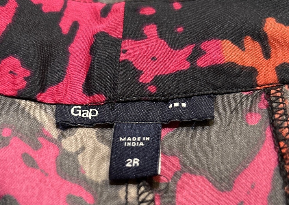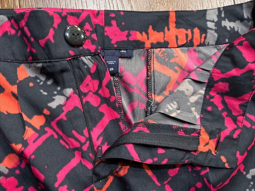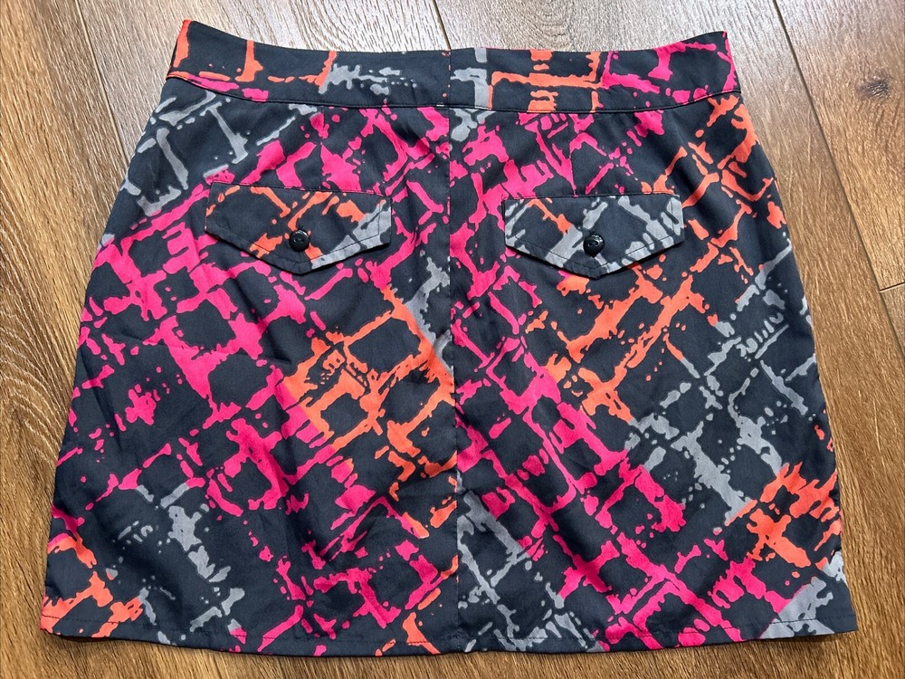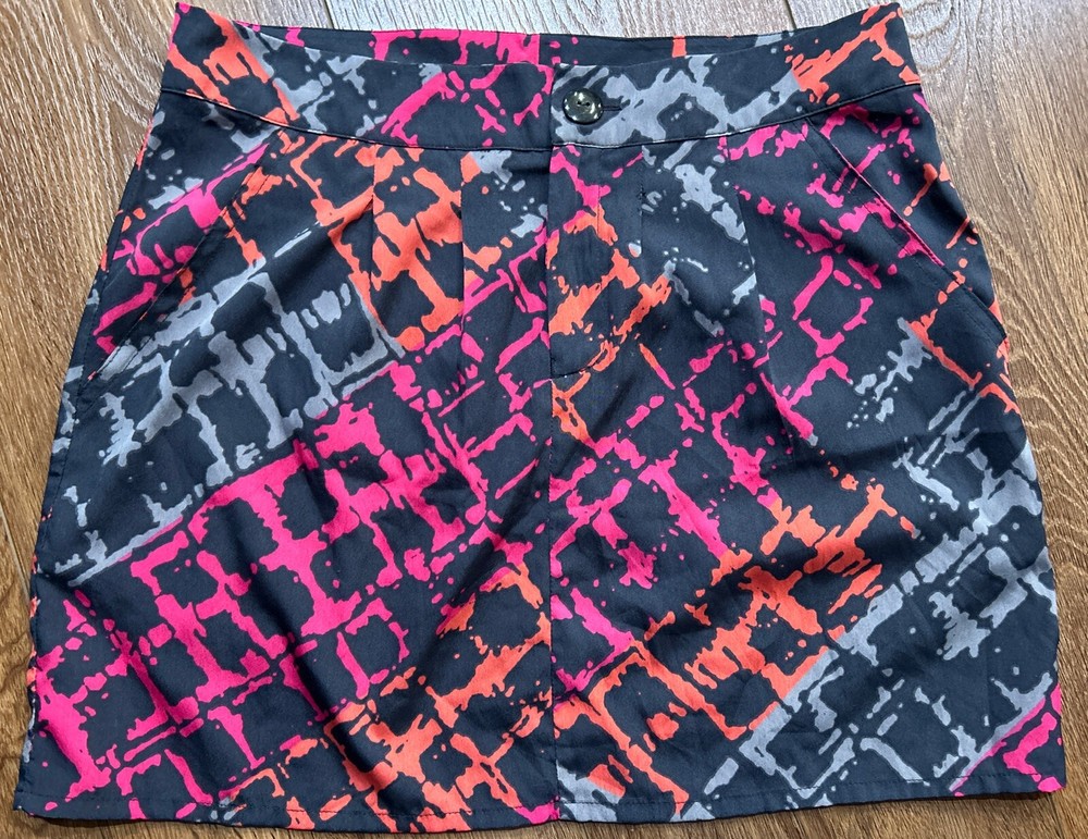 Add a pop of color to your wardrobe with this beautiful red, orange, gray, and black geometric pattern skirt from Gap. The skirt features a convenient zip closure and pockets for added functionality. Perfect for any occasion, whether it be a wedding, party, or business meeting, this skirt is a versatile addition to any wardrobe. The satin fabric type gives it a luxurious feel, while the mid-rise and mini length make it a flattering choice for any body type. This skirt is a must-have for any Barbie lover or fashionista. Measurements Waist - 29” Wait to hem - 15”
