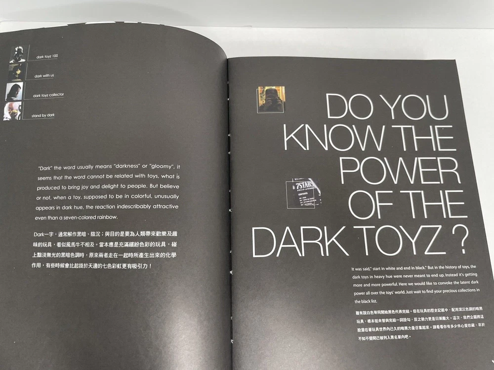 Garden Toyz Book: Do You Know the Power of Dark Toyz? - Hardcover *This book is scarce and hard to find! What is dark toy? What is your dark toys? Everyone has different definition. We had interview 18 people who work in toy industry to share their 10 dark toys. Also we selected the best 100 dark toys. This is not a normal toy book. You might find your dark side after you read this book... .peace Language: In both Chinese and English.