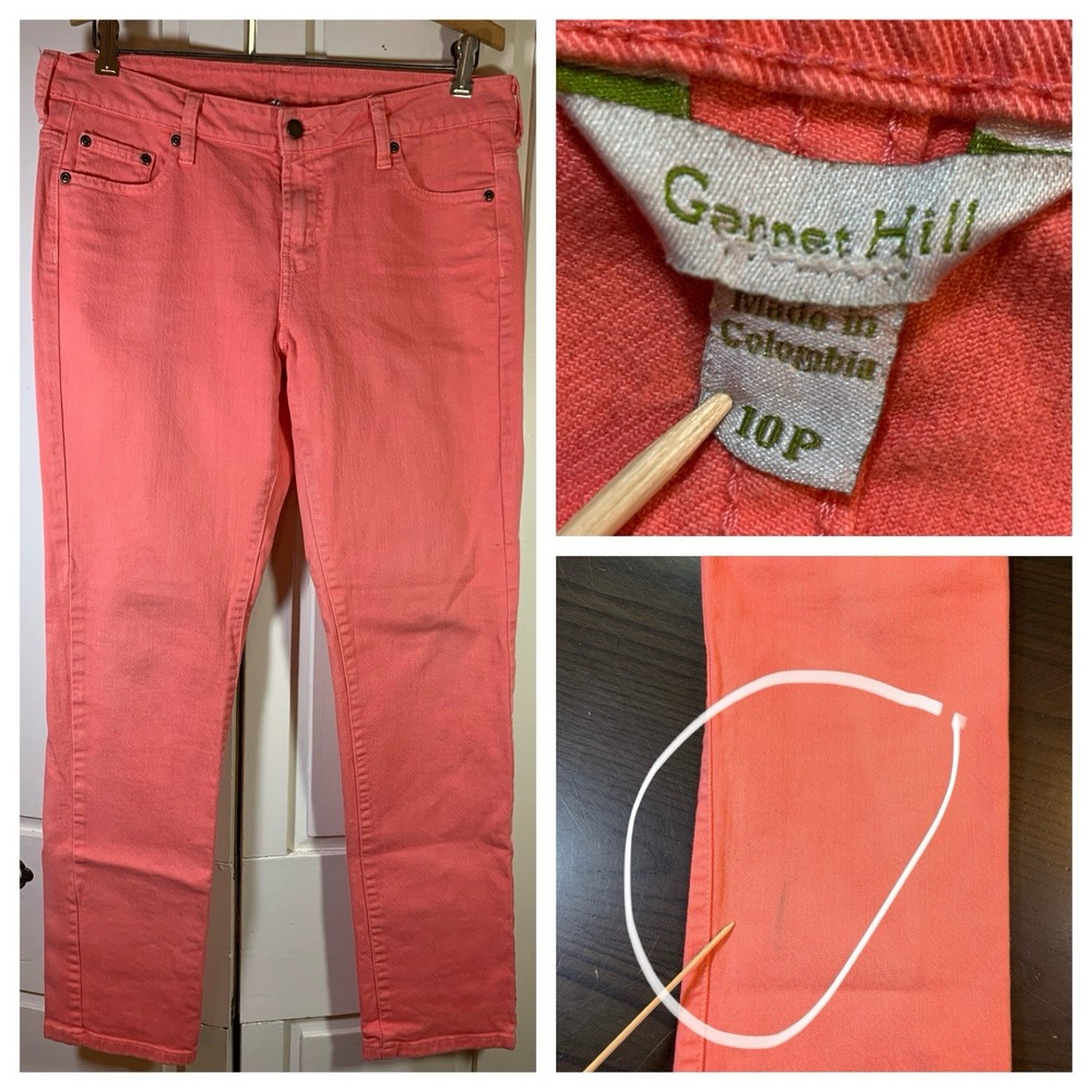 Garnet Hill Jeans Women 10P Pink Salmon Orange Denim Mid Rise Preppy STAINS Please see photos for various stains - I circled...