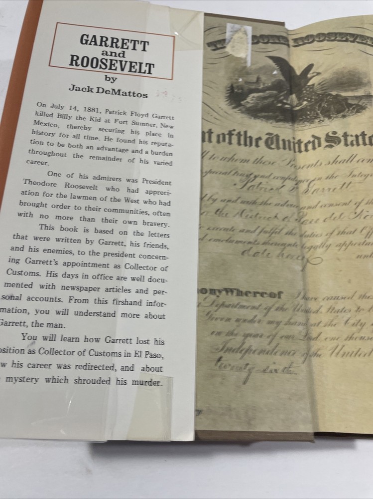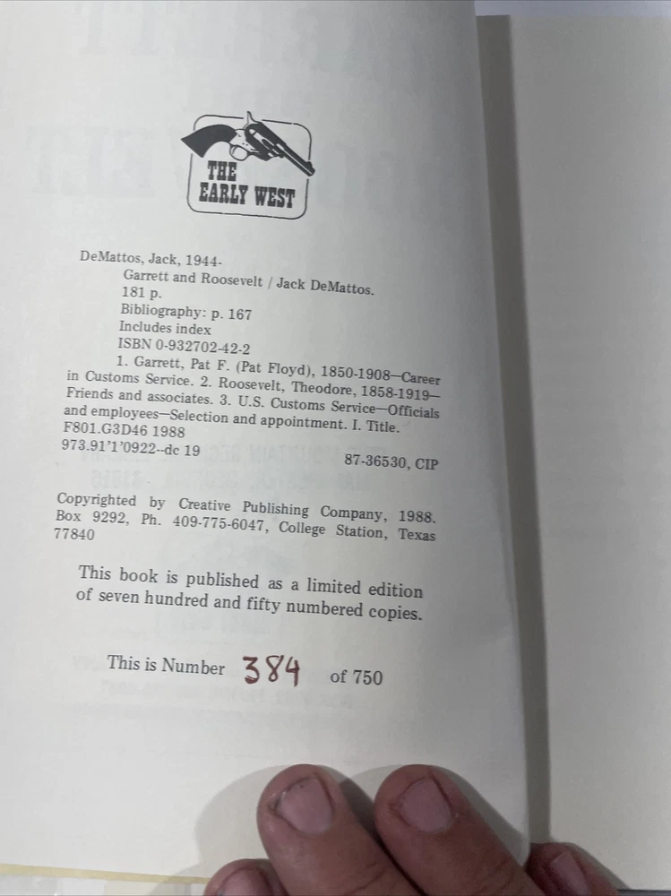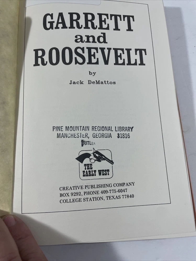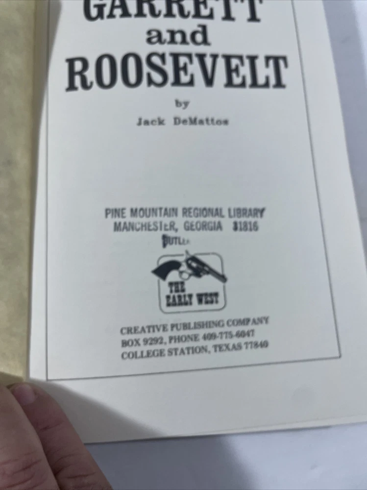 This is a vintage hardcover book titled "Garrett and Roosevelt" by Jack DeMattos. Published in 1988 by Creative Publishing Company, Incorporated, this biography & autobiography genre book is a part of the Early West Series. It is written in English and has 151 pages. The book is ex libris and covers the topics of Law Enforcement and Presidents & Heads of State. The book is in good condition and is a great addition to any collection. With its detailed account of the lives of Garrett and Roosevelt, it offers an insightful look into the early days of the American West. Don't miss the chance to own this great piece of history.