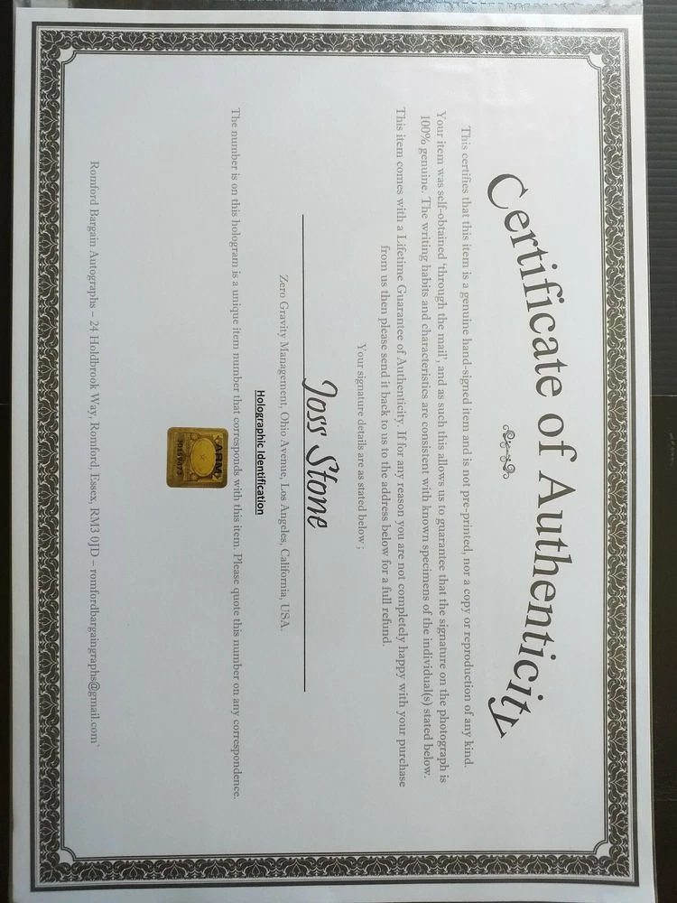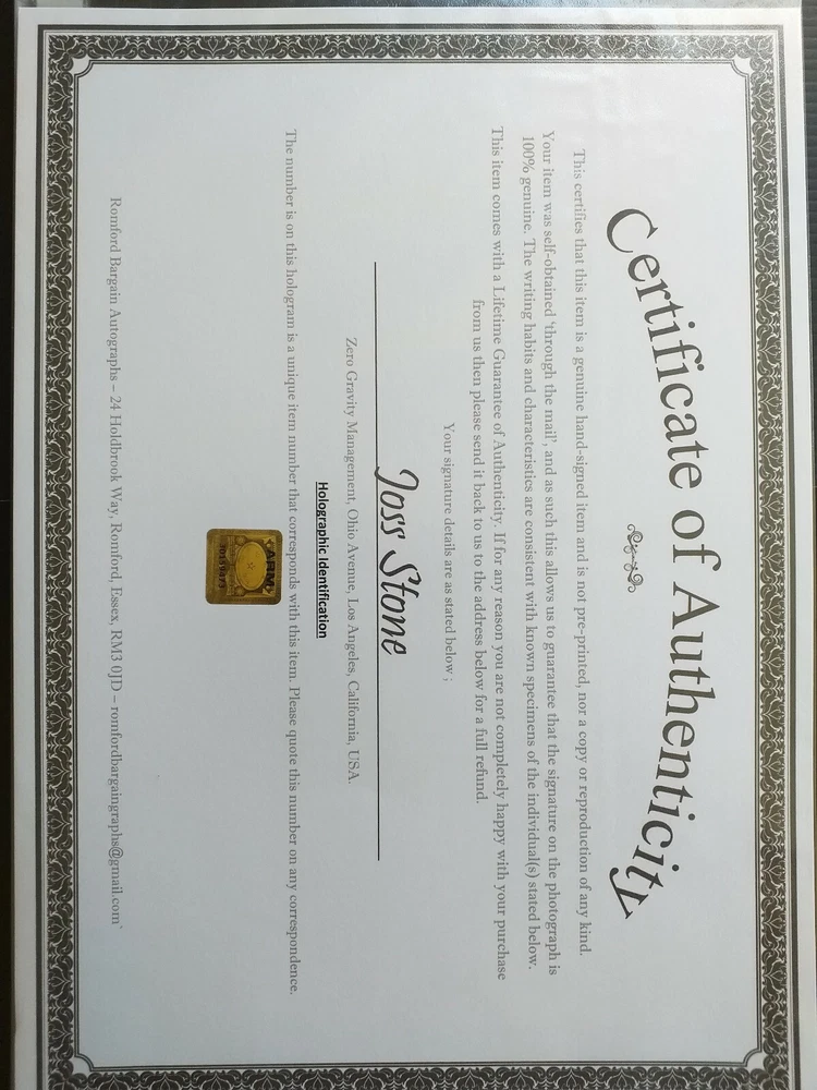 A fantastic peice of Memorabilia for the fan of Joss a lovely genuine signed 10x8 photo with COA. Superb and ready for framing...