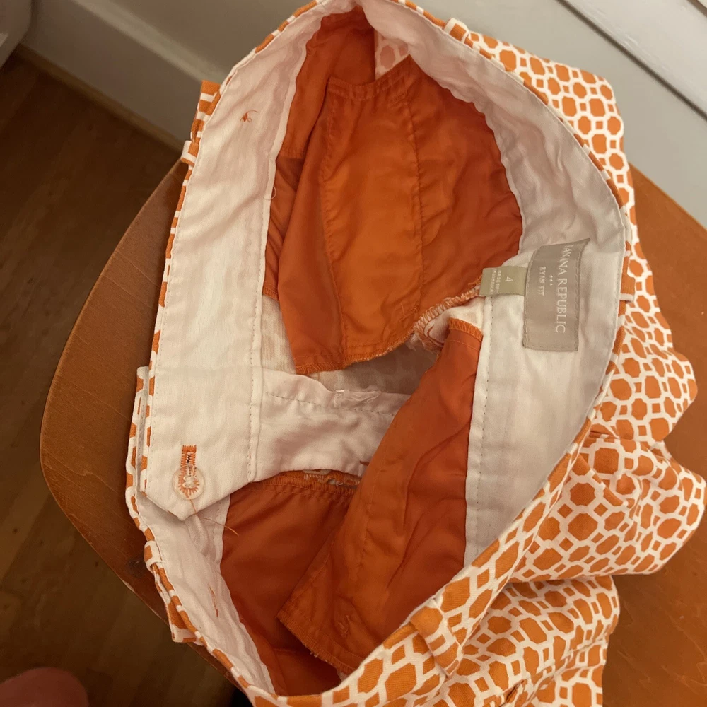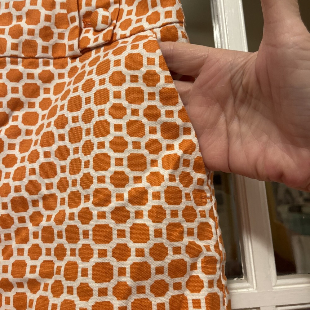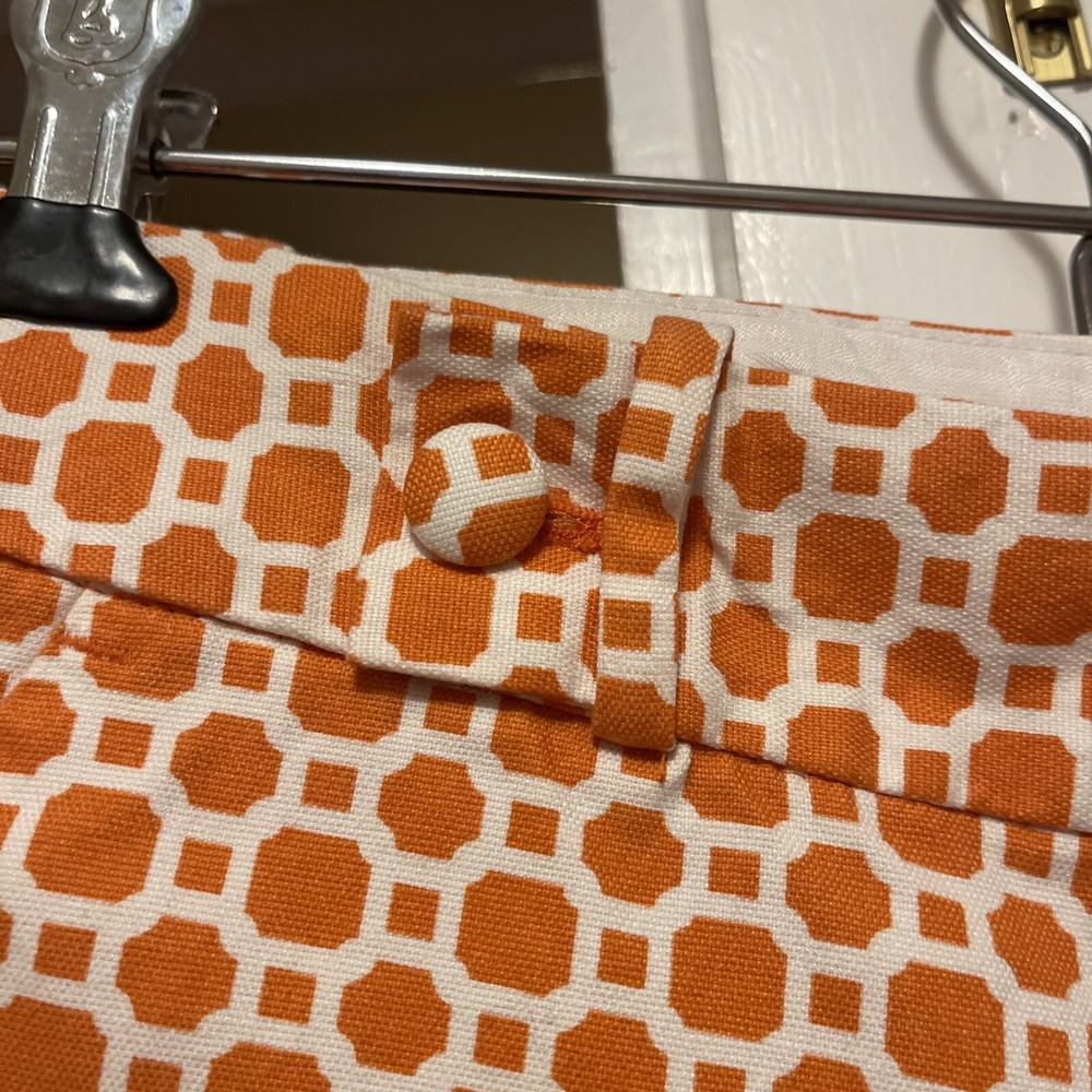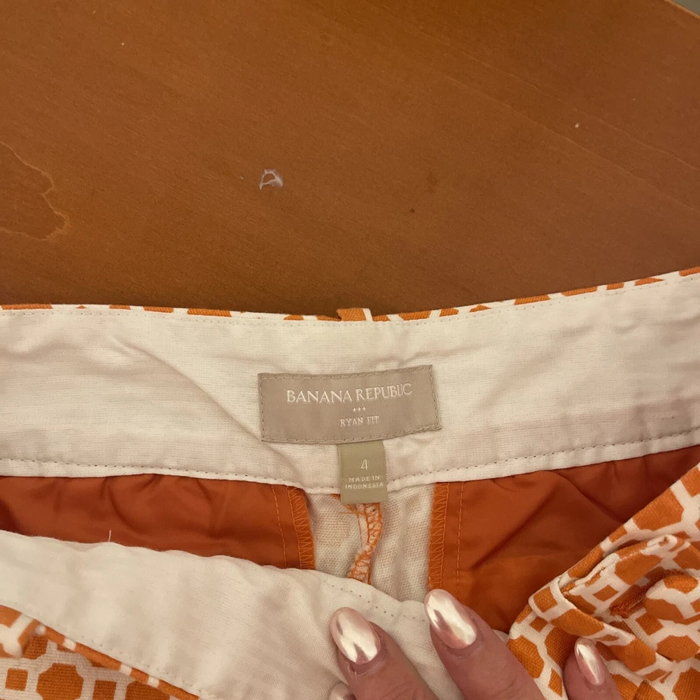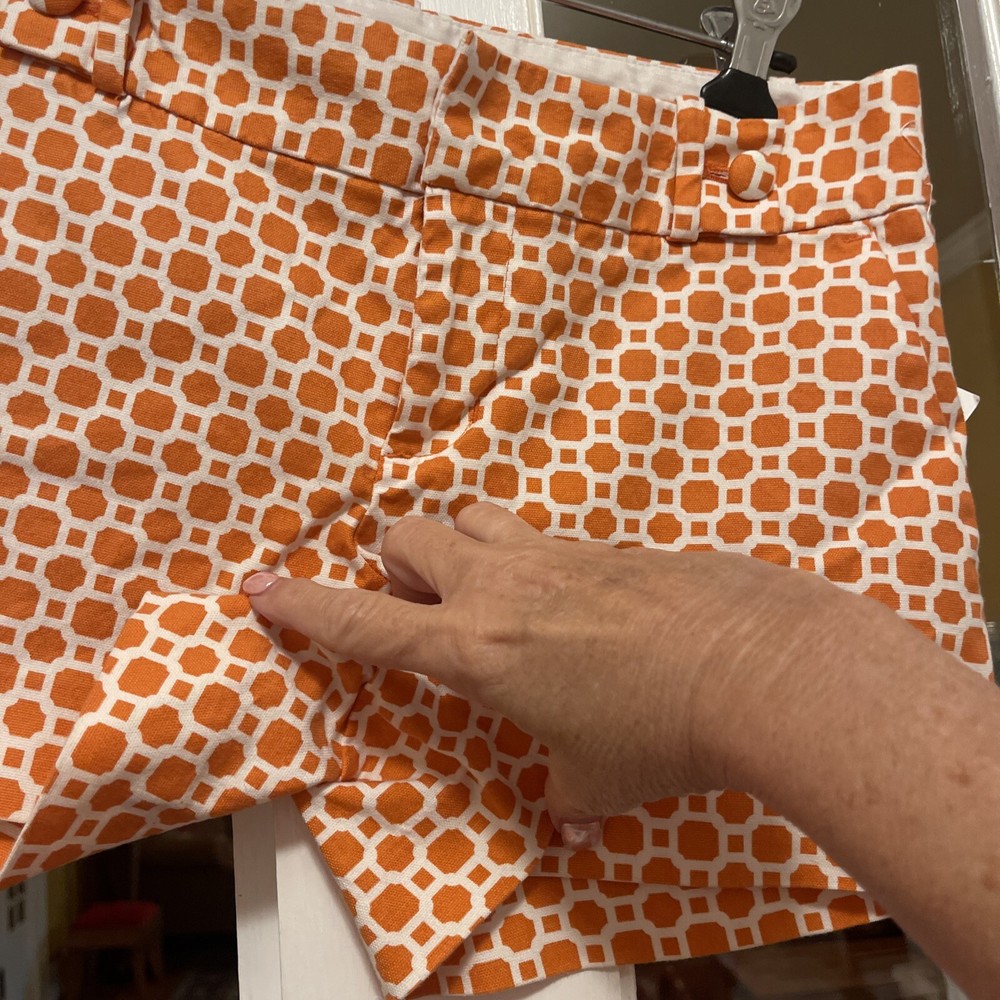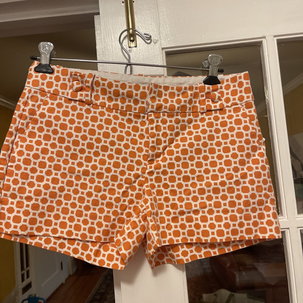 Add a pop of color to your wardrobe with these genuine Banana Republic women shorts in a vibrant orange and white design. The shorts feature a flat front and a mid-rise fit with a waist size of 30 inches and an inseam of 3 inches. The closure includes a zipper and two hooks, and the shorts also come with pockets for added convenience. These shorts are perfect for travel or casual occasions, and the cotton blend material with 97% cotton and 3% spandex ensures comfort and durability. The button accents and stylish design make these shorts a great addition to any outfit. Made in Indonesia, these shorts are available in size 4 with a regular fit.