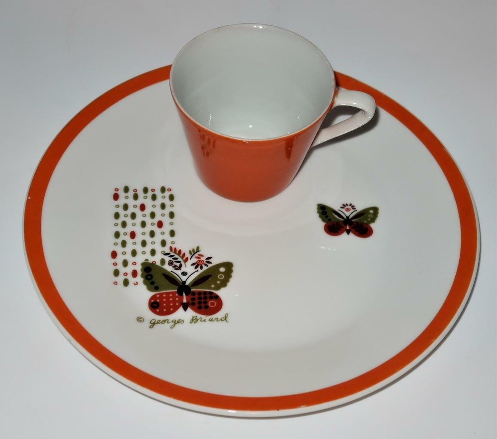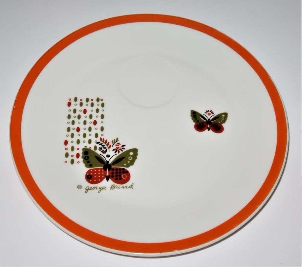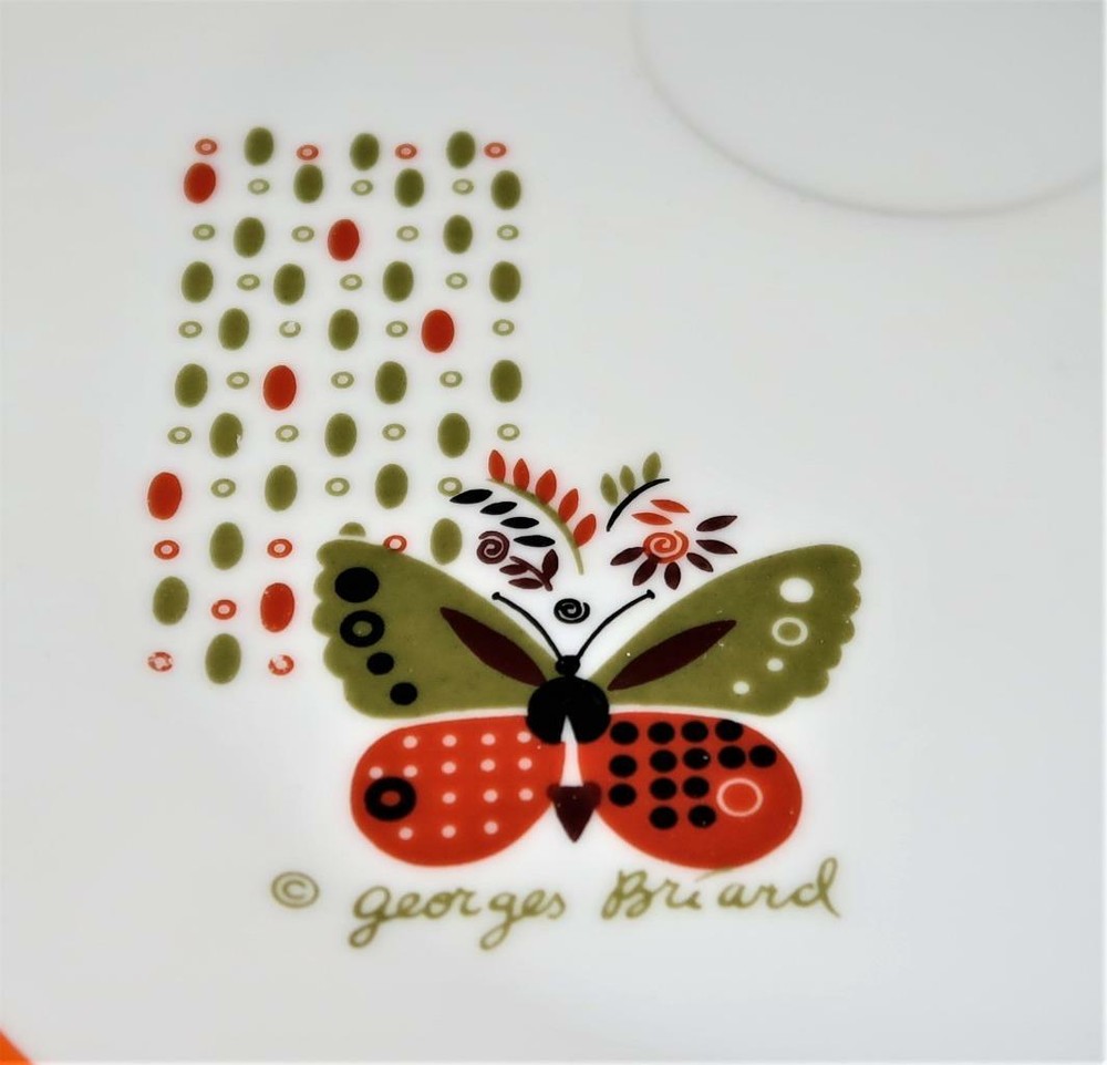 You have found the missing pieces to your china pattern! Here is a Mid Century Modern snack tray and cup from Georges Briard in the LEMON TREE pattern. This set features a butterfly, orange tree and rim. The tray is 9 1/8" across. The cup is 2 5/8" tall by 3 1/4" across plus handle. They are in excellent pre-owned condition, no chips or cracks. Please see our Not Just China Store for more of this collection. Georges Briard LEMON TREE, Mid Century Modern Orange Tree Snack Cup &Tray Georges Briard LEMON TREE, Mid Century Modern Orange Tree Snack Cup &Tray Click images to enlarge Description You have found the missing pieces to your china pattern! Here is a Mid Century Modern snack tray and cup from Georges Briard in the LEMON TREE pattern. This set features a butterfly, orange tree and rim. The tray is 9 1/8" across. The cup is 2 5/8" tall by 3 1/4" across plus handle. They are in excellent pre-owned condition, no chips or cracks. Please see our Not Just China Store for more of this collection. We try to ship within 24 hours of receiving payment. If you have questions or you feel there is a problem, please e-mail us. We will normally get back to you within 24 hours. Thanks for looking at our store! Most of our items are sold as collectibles. We find them at Central Florida antique shows, auctions and estate sales. Antique or vintage items may, by nature have flaws and imperfections due to age. While we are not experts on this merchandise, we do our best to describe them as accurately as possible through pictures and descriptions. We do this as a hobby and strive to make our customers happy. If you are dissatisfied in any way with your purchase, please contact us Images sell! Get Supersized Images & Free Image Hosting Create your brand with Auctiva's Customizable Templates. Attention Sellers - Get Templates Image Hosting, Scheduling at Auctiva.com. Track Page Views With Auctiva's FREE Counter