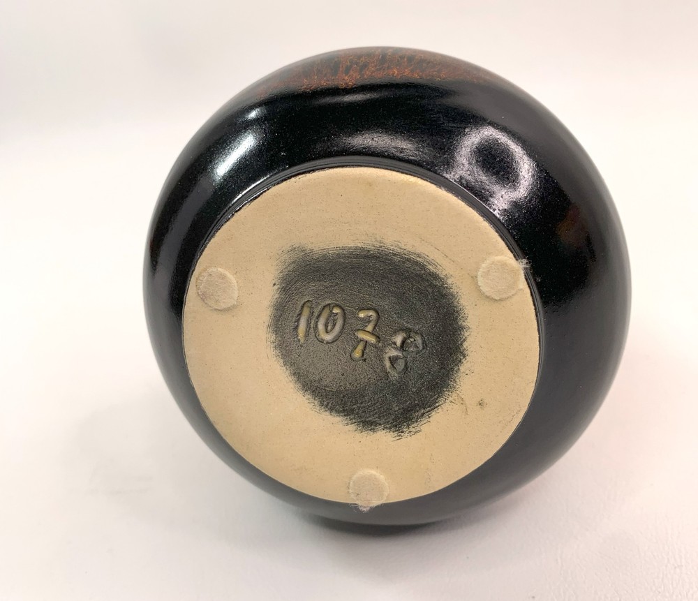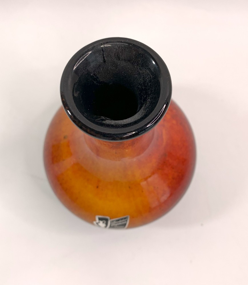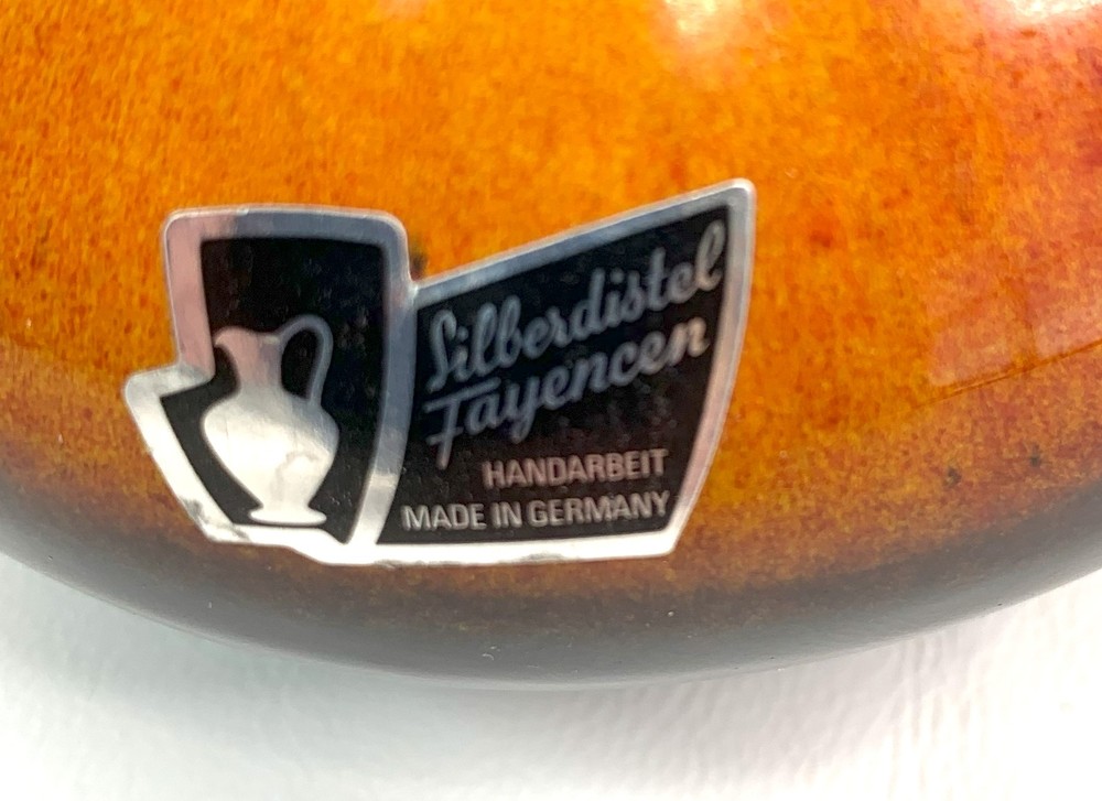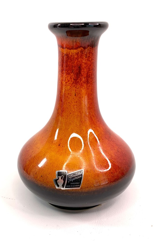German Mid Century Orange Lave Vase Pottery Silberdistel Fayemcen 6.25" German Mid Century Orange Lave Vase Pottery Silberdistel Fayemcen 6.25" Pretty Mid-Century Modern vase, in pretty colors of orange and black Approximately 6.25H x 5" base Original paper label Silberdistel Fayemcen hand painted - Germany Condition - No chips or cracks My home is smoke free, pet free Please Note: Shipping Cost is calculated based on your Zip Code & Box Weight, by the United States Postal Office - The cost of shipping is out of my hands - I try to keep the cost of linen items down by using poly mailers All items I sell come from auctions, estate sales, and yard sales - They are previous owned items Listing and template services provided by inkFrog