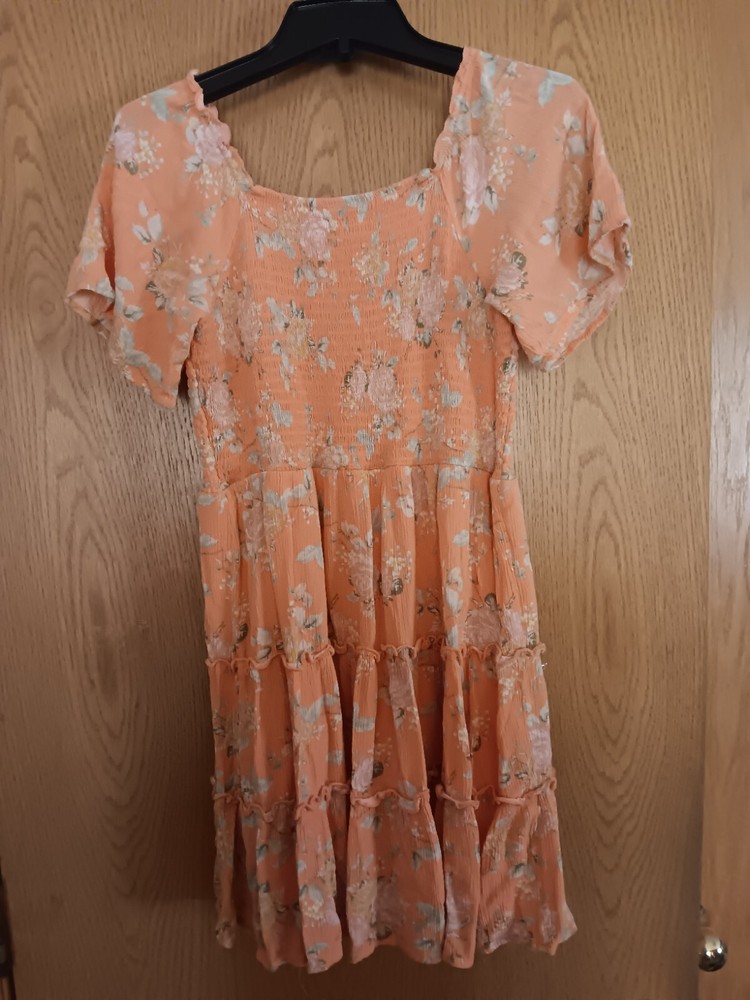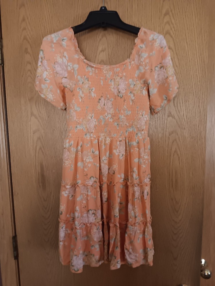 This beautiful girls' dress in size large features a vibrant orange floral pattern that is sure to turn heads. The fit and flare style is perfect for any occasion, while the knee-length cut adds a touch of sophistication. Whether you're looking for a dress for a special event or just a casual outfit, this dress is versatile enough to meet all your needs. The department is specifically designed for girls, ensuring a perfect fit and comfortable wear. Don't miss out on this stunning dress that will make your little girl feel like a princess.