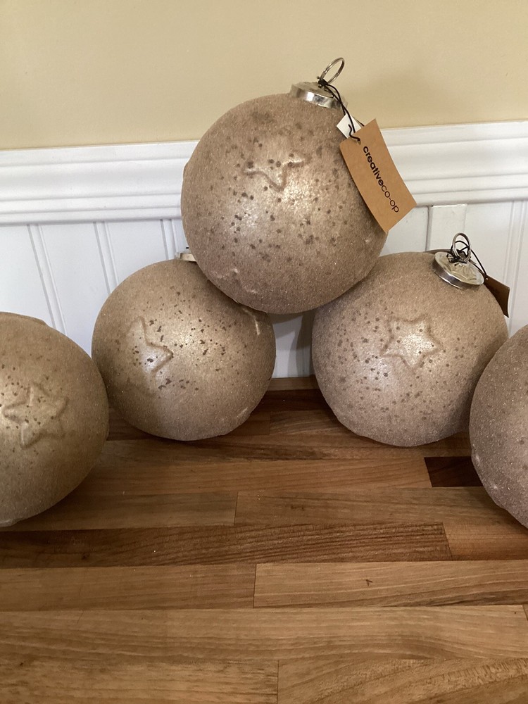 Store clean out items Selling as pictured 5 Christmas Balls with Stars on them 5”