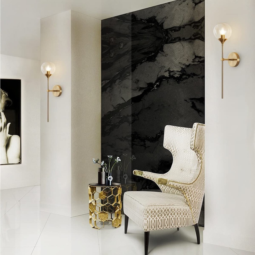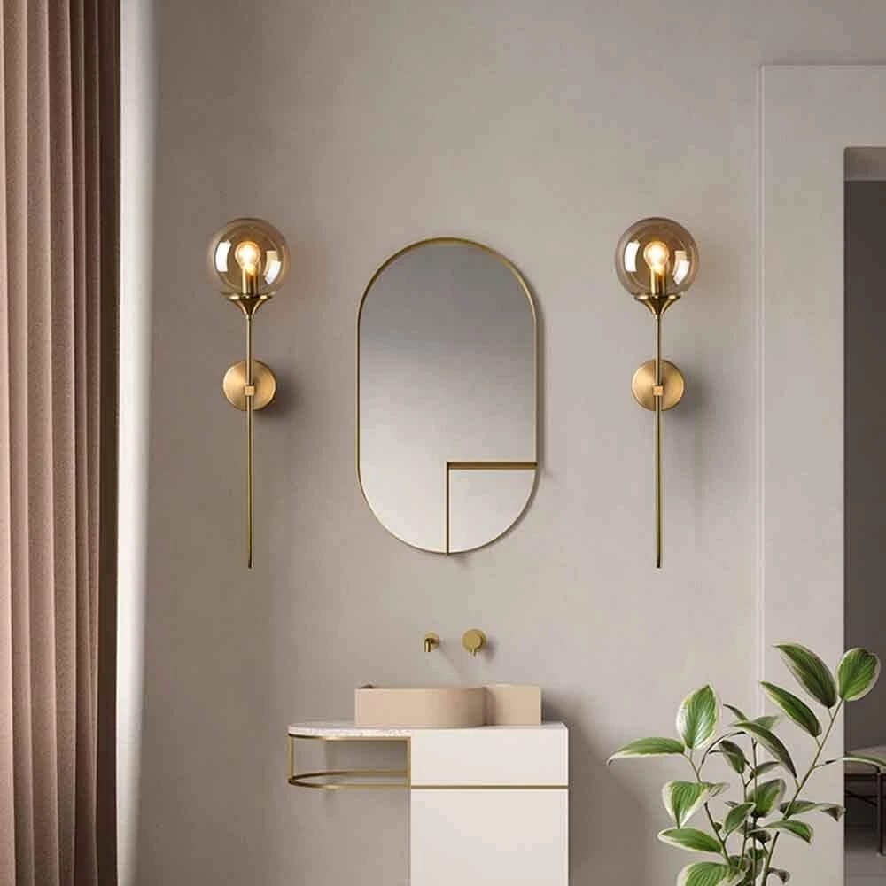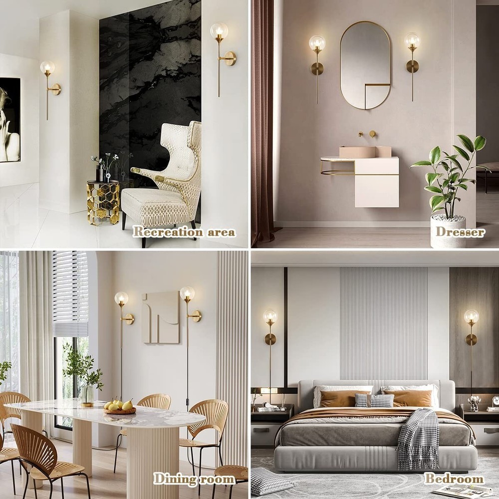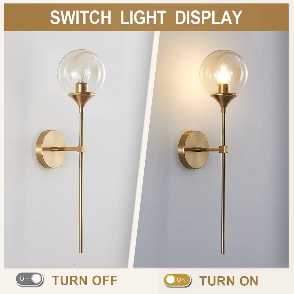 Glass Globe Mid Century Wall Sconce Wall Light Fixture Bedroom Lighting Nordic Living Room Background Wall Lamp Mirror Headlights (Amber) Design and Material: the wall lights are made of metal with a glass lampshade, 1 pack,Amber lampshade Dimension: Round Plate Dia:120 mm / 4.7 Inch. Lampshade Diameter:150 mm / 5.9 inches.(Replacement ASIN:B09NBSVXFQ.) Height:60mm/23.6 inches. Easy And Quick Installation Design:All our products come with a convenient installation pack(included a shade, a metal light base with a black cord and a top cap) to make it very easy to install with an Edison bulb. Dimmable : Fully dimmable when used with a dimmable bulb and compatible dimmer switchn bulbs with E26 sockets (standard USA sockets). Note: the bulb in the picture is sold separately Voltage:110-250V ; Light source: E26(not included). UL listed lamp socket and UL listed electric wire. New in Box Shipping Weight Approx. 2.5 pounds LOC S73