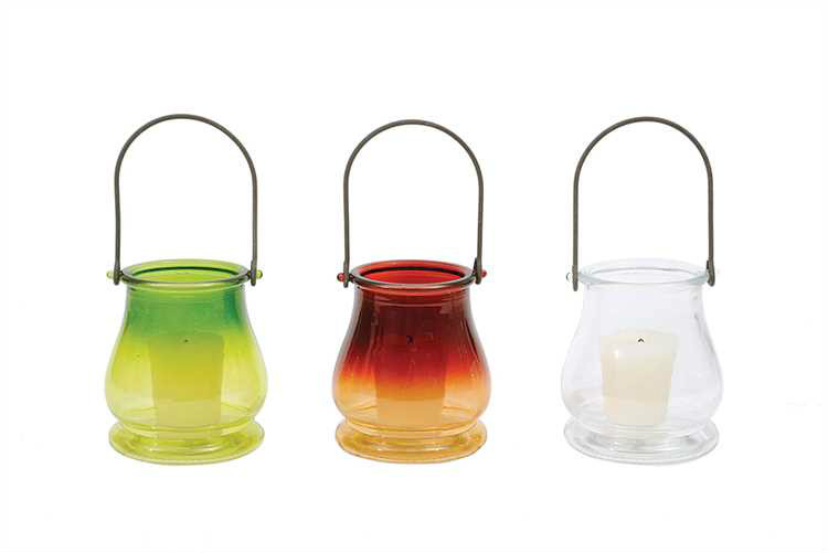 3 3/4"H Glass Tea Light Holders with Metal Handles - Set of 3 - 3 Different Colors.