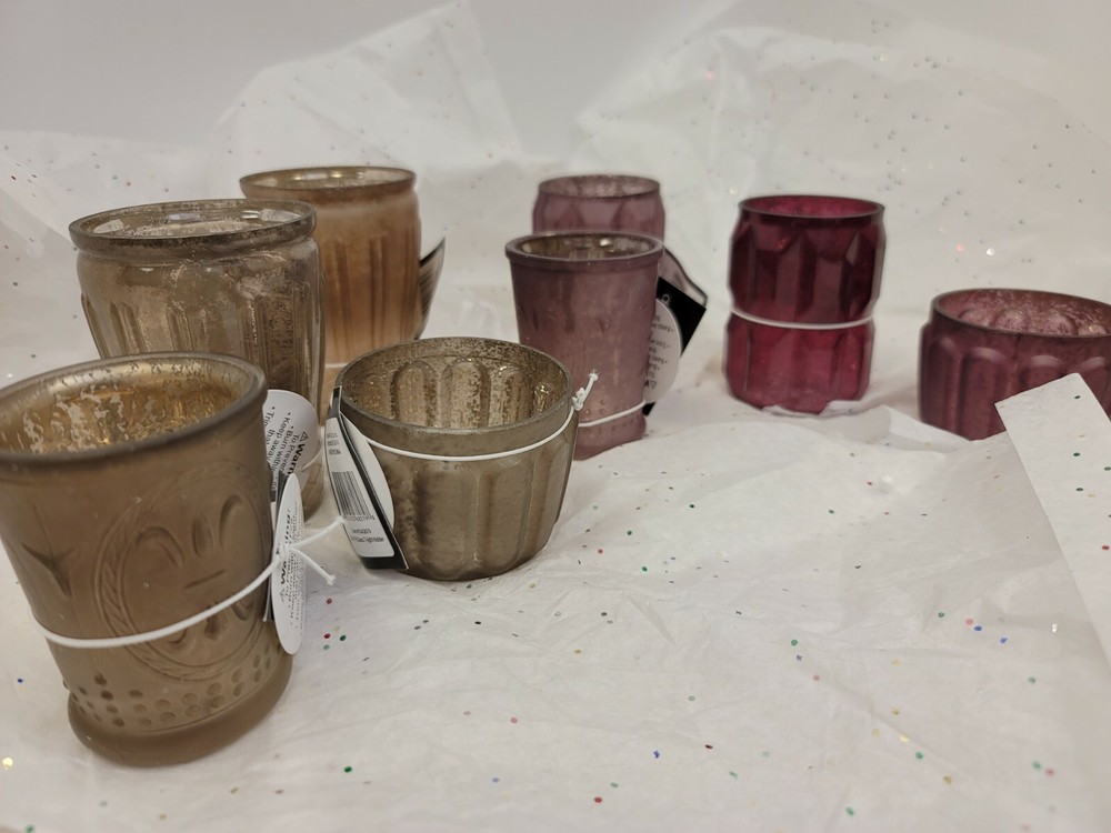 Set of creative co-op votive candles.in purple and gold. This set is actually in an open box but the box wouldn't fit in priority. So i ams selling as new without box.