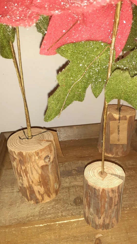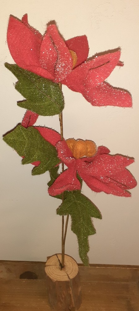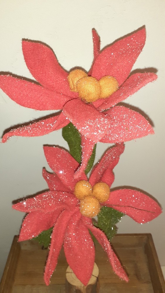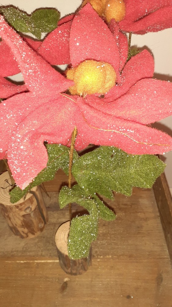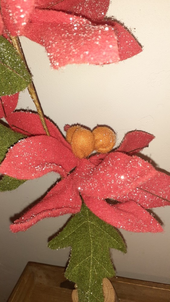 Set of 3 Glittered Red Felt Stem Poinsettia w/ Real Wood Base two are 22" , One is 14" NEW. Creative Co-Op