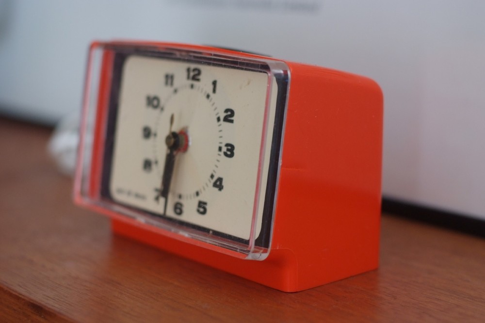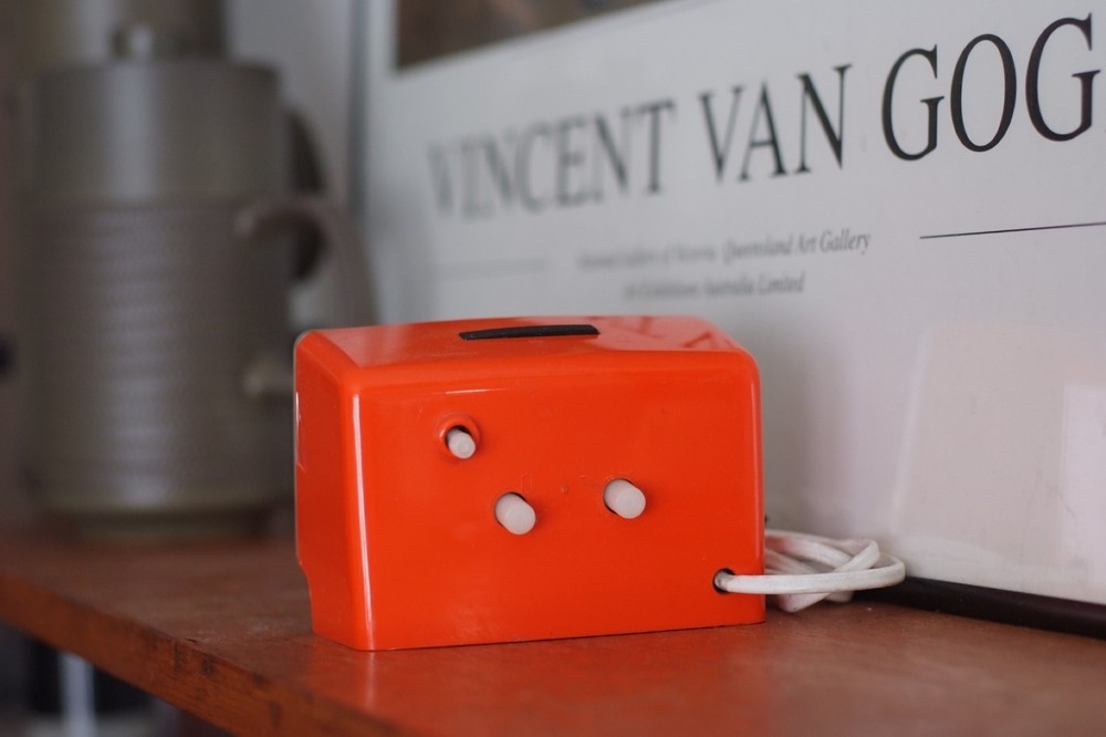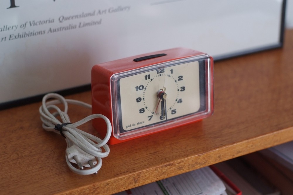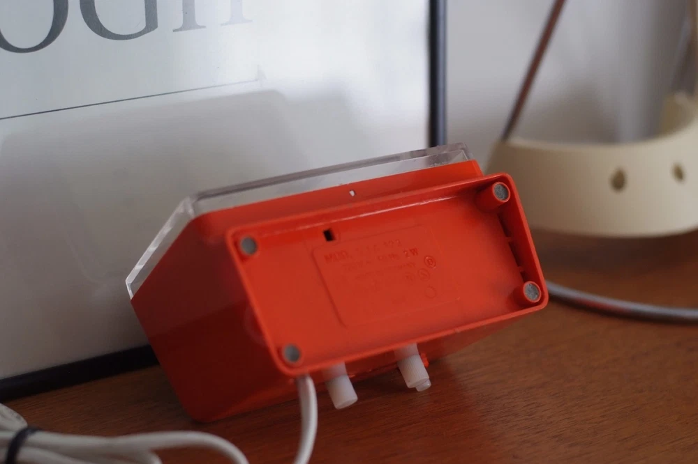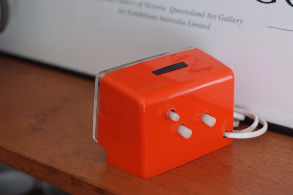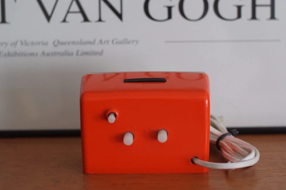 Hi, Up for grab is a nice desk clock made in Germany. manufacture stamped at the bottom. Beautiful mid century design, with a space age touch. nice orange colour. Minimalist design with very legible face. small crack to the dial but does not detract the cool charm of the clock. Wrap around perspex glass thats very cool. the dial says good - old - electric, which is very cool Will suit a retro or modernist interior deco. Gets a lot of compliment as part of my collection for its simple design and colour scheme. tested, and in perfect working order. This is part of my private collection over many years, and will surely be a proud addition to your stable. Please refer to photos for more detail. If you have any question please feel free to get in touch. Thanks,