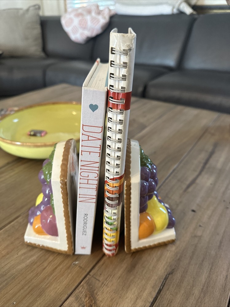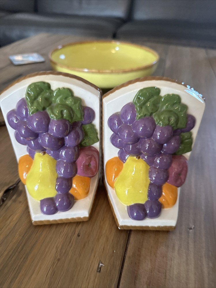 porcelain fruit - Grape Pear Orange apple Bookends VERY RARE. Impressive ! Very small chip in gold trim. See pictures