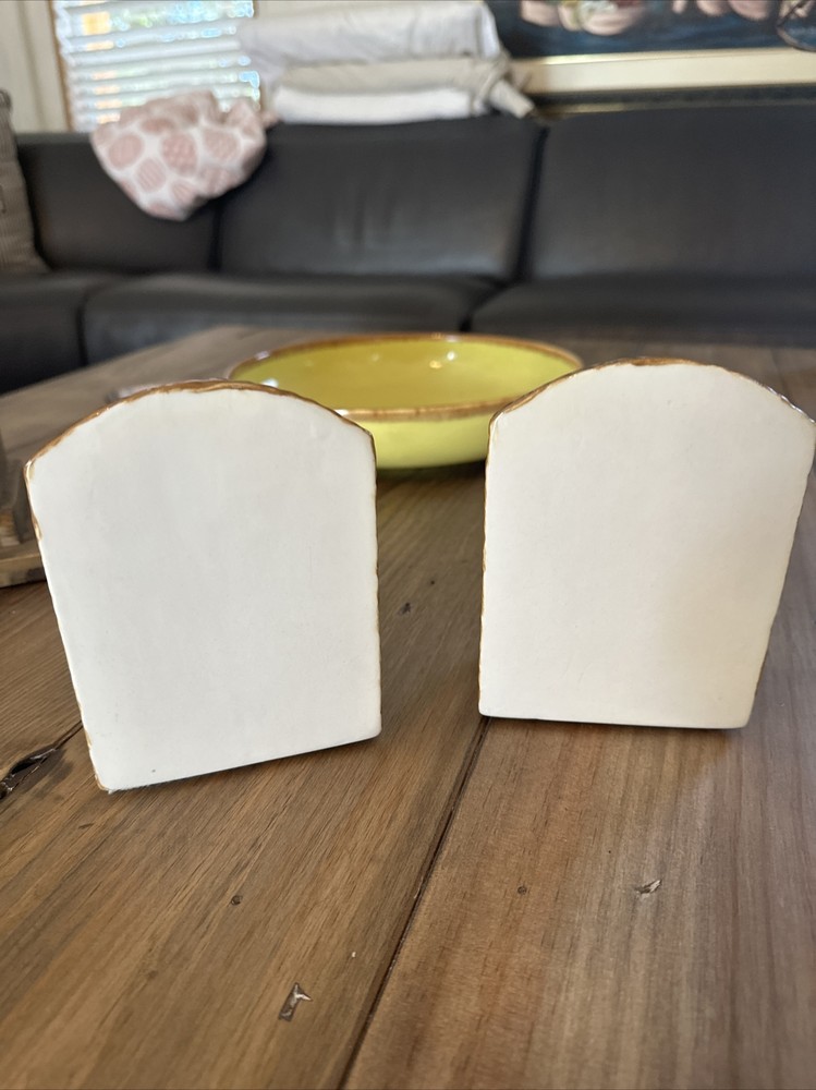 porcelain fruit - Grape Pear Orange apple Bookends VERY RARE. Impressive ! Very small chip in gold trim. See pictures...