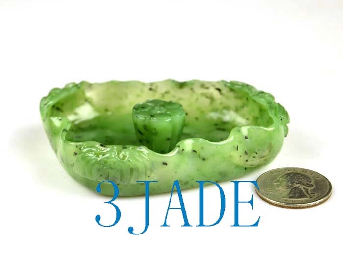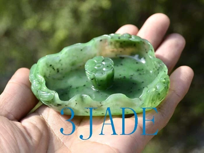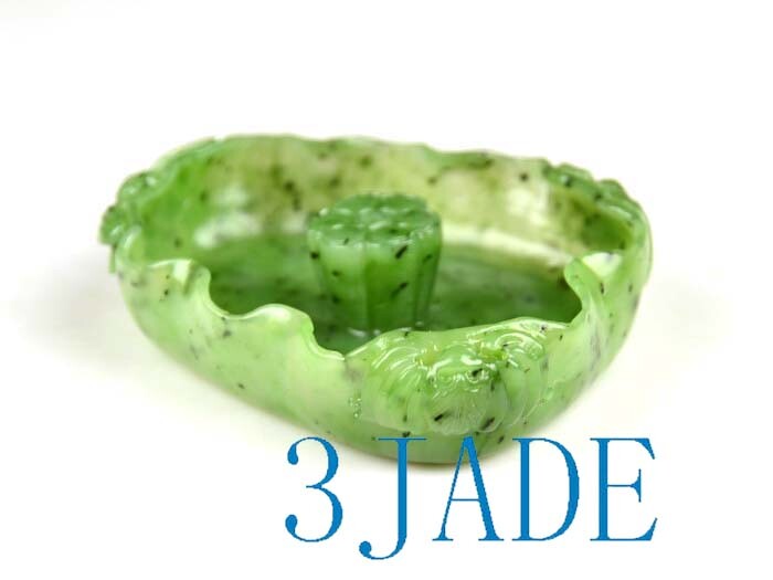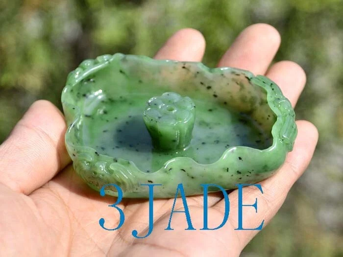 • The item pictured is the exact one you will receive. • This lotus leaf shape joss stick holder/ incense holder / incense burner is carved from natural green nephrite jade gemstone. a bat / dragonfly is carved on the outside of each corner. • It is natural jade, natural color, with no scratches, flaws, or repairs, perfect condition. • Material : Natural Green Nephrite Jade • Size : approx. 3 1/4" * 3/8"(height) * 2 1/4" • Weight : approx. 65 grams • SKU : J026351A, 3JADE MANUFACTURING (China) *************************** Shipping Policy • The shipping method and shipping time vary by country. • We offer combined shipping discount for items purchased within a 7 days period. • You can pay extra money to upgrade regular shipping to EMS (express mail service). • Shipping Policy Details • We ship package by registered mail with online tracking number ($2 value). • Online Tracking Websites 100% Satisfaction Guarantee • If we make any mistake, we will refund your payment or send you a replacement. • If you are not fully satisfied with our products or change mind, please email us immediately, and return them within 14 days from the date you receive them for a full refund. No restocking fee will be charged.