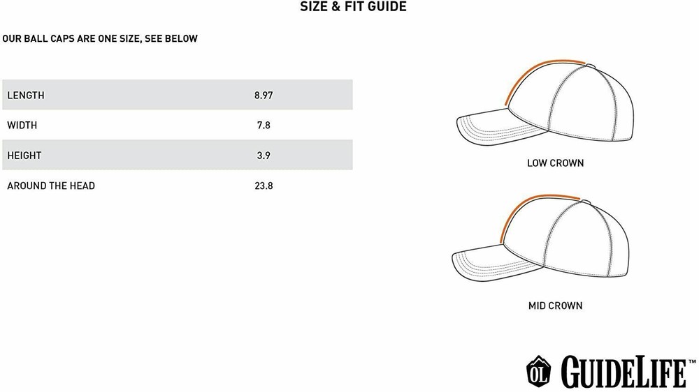 GuideLife Cap Style#FA18UMCF0R0S Color - Orange Cotton canvas front and back Embossed leather Outdoor Life Logo patch Mid crown fit One size fits all, adjustable Brand New with Tags Size: One Size Theme: Logo Department: Men Color: Orange Style: Baseball Cap Brand: GuideLife UPC: 4894429831576
