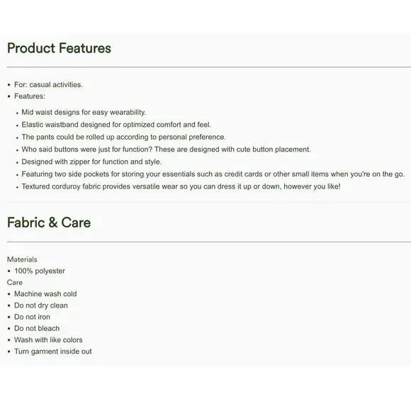 Halara corduroy casual pants in rust orange are a stylish and comfortable addition to any wardrobe. Featuring a mid-rise waist with a relaxed fit and straight leg, these pants offer a flattering silhouette. The side pockets add functionality, while the ankle-length and pleated front design give them a trendy touch. Made from polyester corduroy fabric, these pants are perfect for all seasons and can be machine washed for easy care. Perfect for casual occasions, these NWOT pants in size Medium are a versatile option for any woman's closet. New, without tags Size: M Color: Rust Orange Condition: New without Tags Features: -Pleated -Zip and button closure -Side Pockets -Corduroy fabric -Straight Leg Relaxed fit -Stretch Waistband Waist- 30" Hips- 43" Inseam- 28.5" Rise- 11" Length: 38" Actual color is most like the cover photo, these were hard to photograph and appear much brighter than they actually are in the photos I took. Color may vary from screen to screen, appearing darker or lighter. B0018