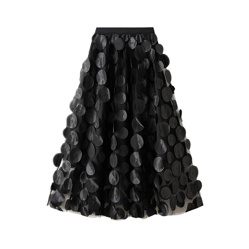Polka Dot Mesh Half-Length Skirt New Mid-Length Umbrella Skirt Size Waist 60-100CM skirt length 80CM skirt lining length 63CM