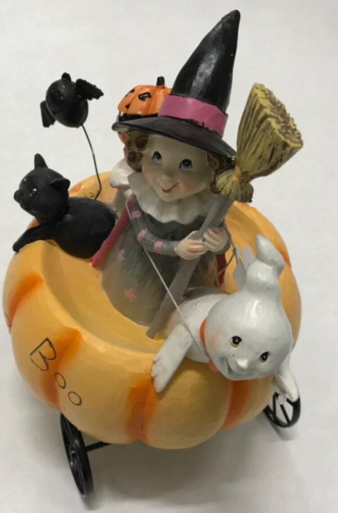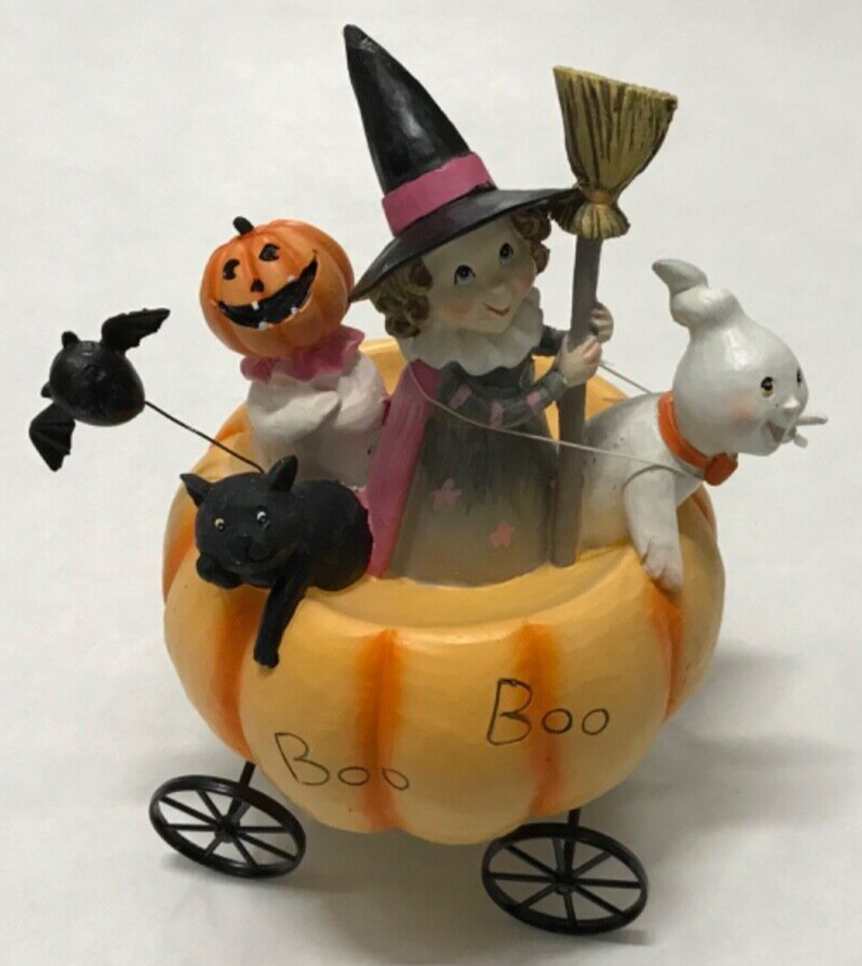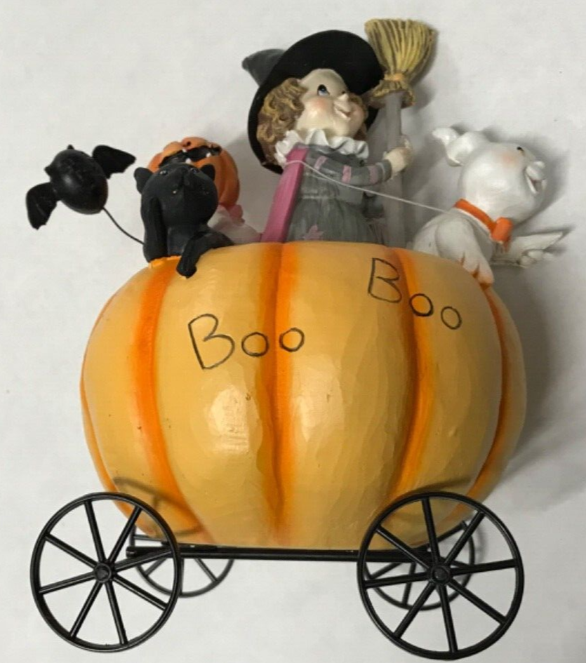 By Transpac. Don't miss out on the opportunity to bring a spooky ambiance to your home with this delightful decoration! Get ready to scare up some fun with this "Boo Boo" pumpkin cart Halloween tabletop decoration! Features a charming pumpkin cart filled with trick-or-treaters. Its unique design and elegant finish make it a versatile addition to your home décor. Product Features: Pumpkin cart Halloween tabletop decoration Cart with trick or treaters Reads "Boo Boo" Recommended for indoor decorative use only No assembly required Can be displayed alone or with other holiday accents Dimensions: 8.75"H x 7"W x 6"D Material(s): resin