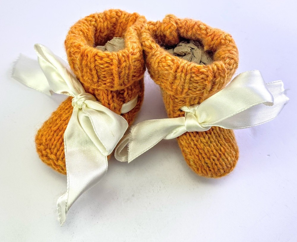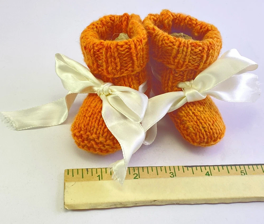 These adorable handmade crochet baby booties in orange are perfect for any casual occasion. Featuring a lace-up closure. These unisex baby and toddler booties have a lightweight feel and are made with 100% cotton upper material and lining material. The crochet accents and pattern add a touch of vintage charm, making them a perfect addition to any baby's wardrobe. The boots have minimal cushioning level and a medial post midsole type. They are available in US shoe size 0-6 months and UK shoe size 0-6 months. The outsole material is cotton, and the insole material is also cotton crochet. These booties are part of the crochettique product line and theme, and they are sure to be a favorite among crochet enthusiasts.