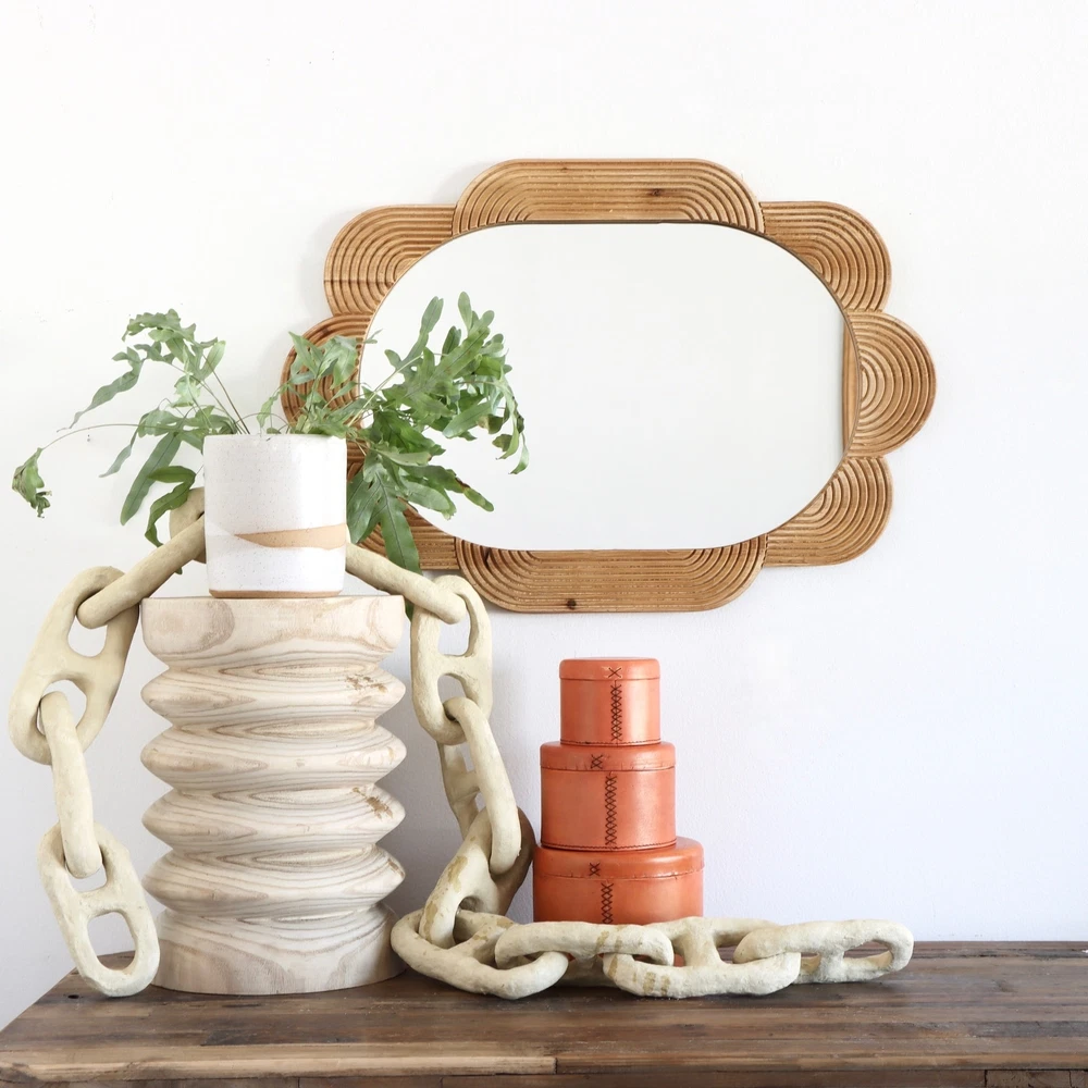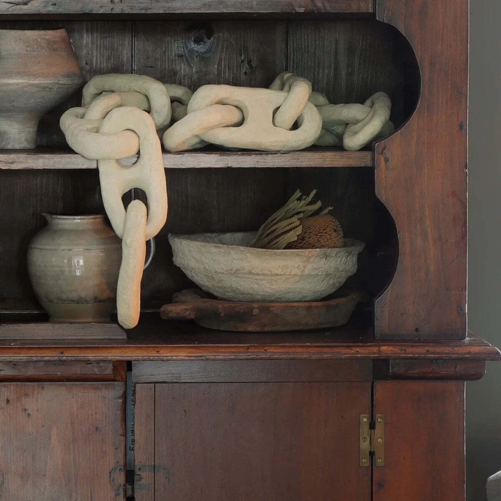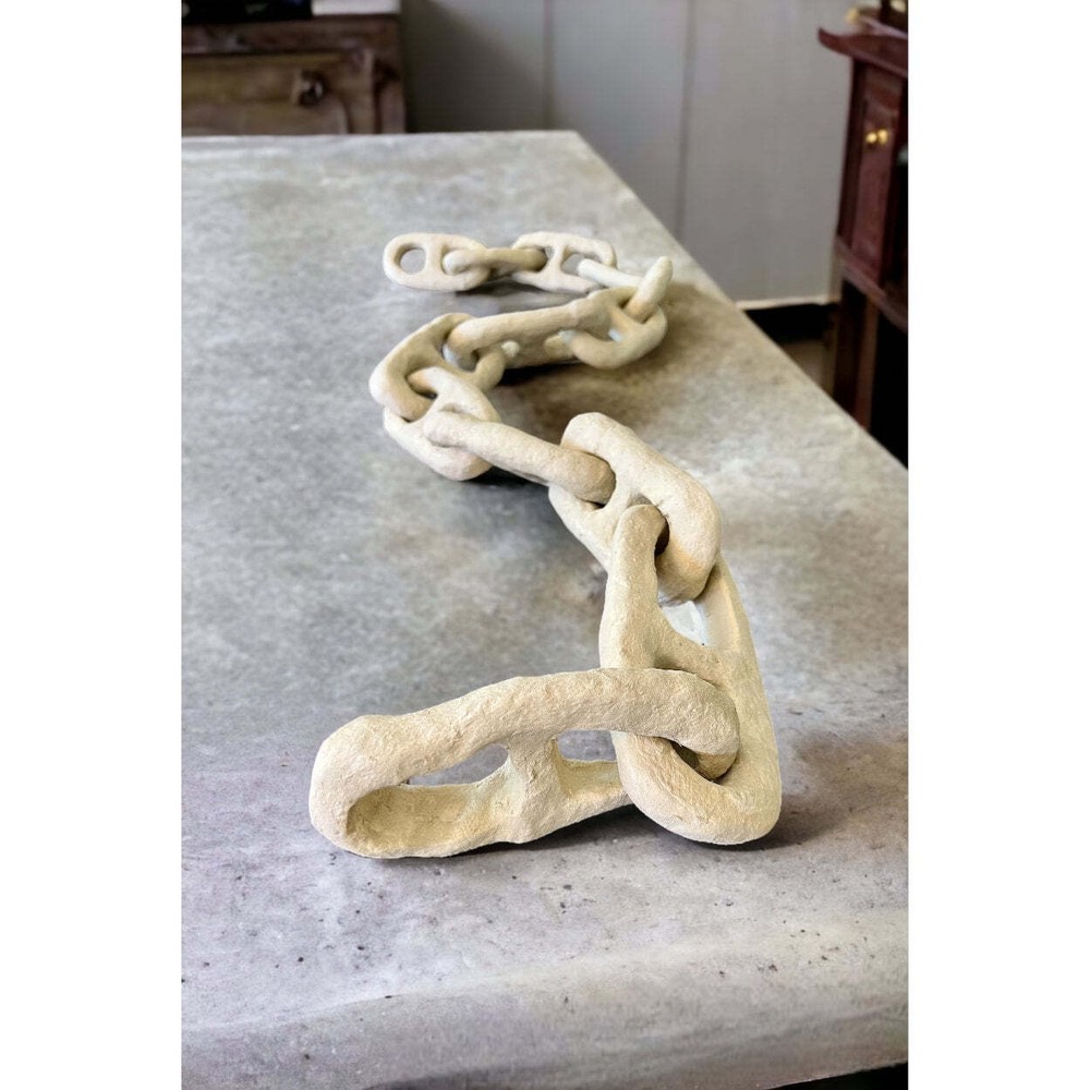 Handmade Paper Mache Chain Made completely by hand, these paper Mache chain links are surprisingly durable and make for a unique tabletop decor item. We envision these on a coffee table next to a few books or on top of a mantle. These can also be hung vertically on a wall for an even bigger statement. 6' L x 4" W 13 links total 100% paper mache Handmade Paper Mache Chain Made completely by hand, these paper Mache chain links are surprisingly durable and make for a unique tabletop decor item. We envision these on a coffee table next to a few books or on top of a mantle. These can also be hung vertically on a wall for an even bigger statement. 6' L x 4" W 13 links total 100% paper mache × × × × × × × × × × Buy now and save! Shipping info Click the Shipping & Payments tab above the listing description for more info Click the Shipping & Payments tab above the listing description for more info! Additional delivery notes PICK UP OPTION Sorry, our items are NOT available for pick-up. PAYMENT Immediate payment is required upon selecting "Buy It Now" or upon checking out through the cart. We accept payment via U.S. PayPal accounts and all Major Credit Cards, Debit Cards & Google Pay. We are legally required to collect sales tax in those states and localities where we maintain a physical presence (nexus). The applicable amount of sales tax charged to an order will be calculated based on the shipment destination's state and local sales tax laws. Thank you for shopping with us on eBay! Additional Information No additional information at this time Ask seller a question You might also like Antique Gold Finish Hand-Forged Metal Taper Holder Asparagus Fern Bush Bag of Felt Acorns Ask Your Dad & Call Your Mom Black Metal Signs Contact To contact our Customer Service Team, simply click the button here and our Customer Service team will be happy to assist. Ask seller a question © Rust & Cinder Shipping & Payments Click the Shipping & Payments tab above the listing description for more info Payment Accepted Payment Methods Immediate payment is required upon selecting "Buy It Now" or upon checking out through the cart. We accept payment via U.S. PayPal accounts and all Major Credit Cards, Debit Cards & Google Pay. We are legally required to collect sales tax in those states and localities where we maintain a physical presence (nexus). The applicable amount of sales tax charged to an order will be calculated based on the shipment destination's state and local sales tax laws. Thank you for shopping with us on eBay! Returns Returns are accepted Items must be returned within 30 days of the auction ending Buyer will pay for return shipping. eBay integration by