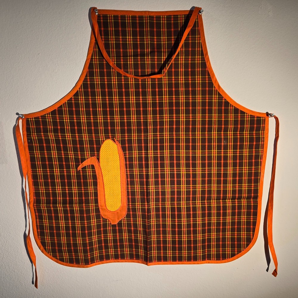 Get ready for your next barbecue party with this handmade vintage orange plaid cotton BBQ apron. Made with love and care, this apron is perfect for any occasion, especially summer parties. The plaid pattern adds a touch of retro style, while the applique feature adds a unique touch to the design. This one-size-fits-all apron is made of high-quality cotton material and is perfect for teens, adults, and unisex. To ensure the longevity of the apron, it is recommended to hand wash only. This original piece from the 1950s is a must-have for any collector or lover of vintage items.