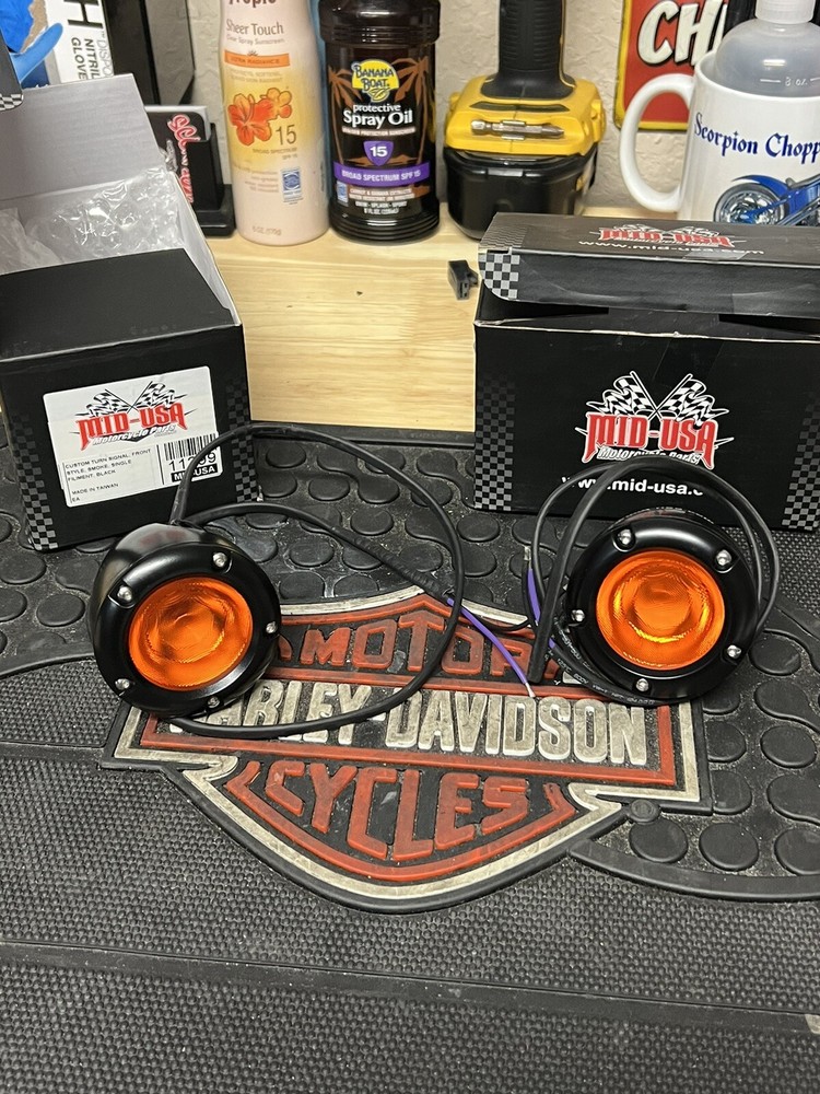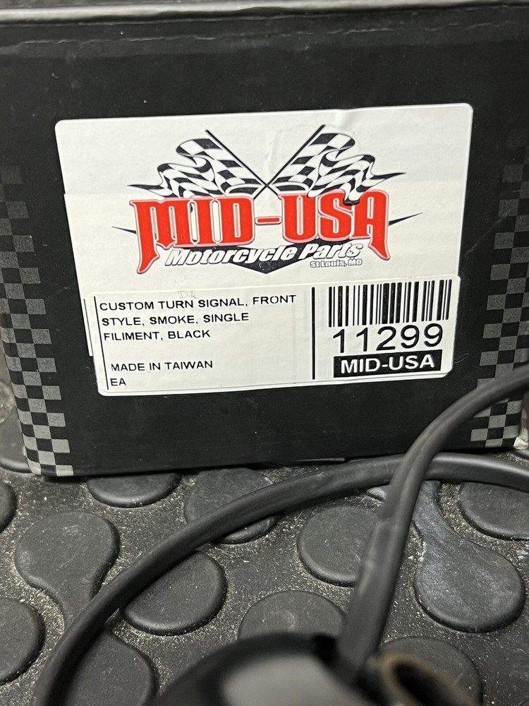 Harley Davidson Mid-USA Matte Black Single Filament Front Turn Signals. Sold as a pair of 2 Buyer responsible for proper Fitment and Installation...