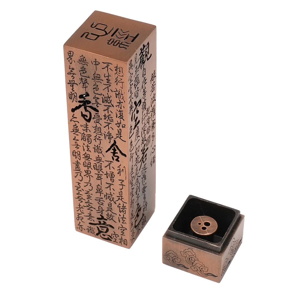 Product Description Features: * Brand new and high quality *Heart by ancient hollow design, xiangyun sculpture base. *Two colors are available,it can meet your various needs. *Easy to carry,very convenient. Specification: Material: Zinc Alloy Color: red copper, bronze Suitable for: 105cm long and below diameter: 1.6mm/2.0mm/3.0mm Size: 3x3x13cm/1.2x1.2x5.1'' Package Contents: 1 x Incense Box(not included fragrant) Note: 1. The real color of the item may be slightly different from the pictures shown on website caused by many factors such as brightness of your monitor and light brightness. 2. Please allow slight manual measurement deviation for the data. Payment Payment must be completed within 5 days. If you have any problems about payment, please contact us via ebay message. Delivery details We only ship to confirmed ebay Order addresses. Please comfirm that your Order address is in line with your shipping address. Please kindly note that the c ombined shipping is not provided because the shipping fee is calculated by weight. Also, the each additional item means exactly the the same color and size. It takes about 7 -15 working days to US; about 10-30 working days to other countries. Transit time may be a little delayed because of the bad weather and customs inspection . If you do not receive your item within 30 working days since payment finished, please contact us immediately for further assistance. Contact us We strive for 100% customer satisfaction! Positive Feedback is very important to us. If you have any questions, p lease feel free to contact us via "Ask seller a question" . We will reply your email within 24 working hours.