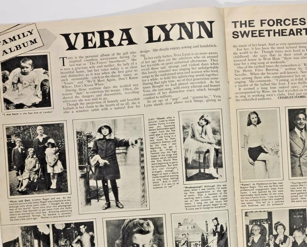 Wartime sweetheart Vera Lynn's Family Album is featured in this rare 1960's magazine Its a wonderful 2 page feature full of her family photographs a great momento. Vera gives an insight to each photo in a written caption. Approx 15 unseen images. Cover - Helen Shapiro, plus a half page interview and photo feature about the singer inside. Also inside - Bertrand Russell interview with photo, 2 pages. Fleet Street cartoonist Frederick / Fred Joss is defended by this magazine in a 3 page feature with photos. Girls can do anything' feature with photos of Margaret Soder, Mary Cole, Jill Savage and Christabel Carlisle. 2 pages in colour. Crown Wallpaper and Peter Scott sportswear ads. You will recieve the full magazine which is close to A3 in size. Excellent condition. There is a price number written on the cover in pencil visible in the photograph. Airmail worldwide takes 4-6 days, to Europe 3-5 days. I always obtain a Certificate of Postage, and all magazines are sent in an archival sleeve with a bubble-wrap or cardboard envelope to provide the best possible protection. All postal rates include insurance and online tracking. 0495 1746