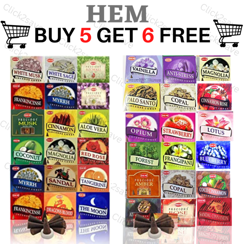 Features and further detailsFor Buy 5 Get 6 Free Offer, You Must add 11 item in BasketHEM Cones are popular and traditional choice for your home. Same blends used in making incense sticks are used in manufacturing of Incense Cones.To give your home an instant uplift with beautiful fragrance of Hem Incense Cones fragrance.Simply light the tip your HEM Incense Cone and wait for it to glow. Then blow out the flame and place in an incense holder for beautiful fragrance.HEM Incense Cones lets you create the perfect surrounding for relaxation and meditation in your home.Each pack contains 10 Incense Cones and metal holderEach Cone will burn between 15 - 20 minutes approx.Packaging is recyclable. Hem Incense Cones Aroma Dhoop Joss Mix & Match Premium Quality- BUY 5 GET 6 Free Features and further details For Buy 5 Get 6 Free Offer, You Must add 11 item in Basket HEM Cones are popular and traditional choice for your home. Same blends used in making incense sticks are used in manufacturing of Incense Cones. To give your home an instant uplift with beautiful fragrance of Hem Incense Cones fragrance. Simply light the tip your HEM Incense Cone and wait for it to glow. Then blow out the flame and place in an incense holder for beautiful fragrance. HEM Incense Cones lets you create the perfect surrounding for relaxation and meditation in your home. Each pack contains 10 Incense Cones and metal holder Each Cone will burn between 15 - 20 minutes approx. Packaging is recyclable. Postage & Packaging All quantities will be sent in a PIP(Flat) packaging and does not come in their box to reduce the postage cost Powered by MicroInventory.com - eBay inventory management made easy... Recommended products Provided by Hem Incense Cones Joss Mix & Match Scent Burning Cone Insence Aroma Dhoop View item Hem Incense Cones Joss Mix & Match Scent Cone Insence Fresh Aroma Dhoop Burning View item Hem Genuine Red Rose Incense Cone Dhoop Joss Hex Pagan Aroma incense Cones 6PK View item Hem Opium Incense Cones Genuine Dhoop Burning Hex Joss Aroma Insence Cone 6PK View item Incense Sticks & cones Hem Insence Joss Long Burning Joss Stick Dhoop Fragrances View item Hem Genuine Incense Cones In Many Fragrance Premium Quality- BUY 3 GET 2 Free View item Hem Incense Sticks Joss Mix & Match Scent Burning Stick Insence Aroma Agarbatti View item Hem Incense Cones Coconut Genuine Insence Dhoop Cone Joss Home Fragrance - 6PK View item
