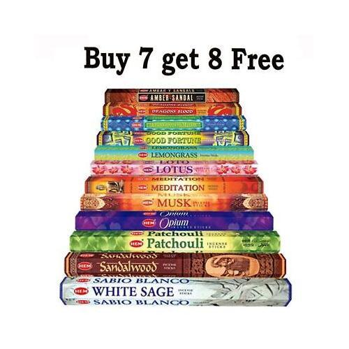 Buy 7 Get 8 Free: If you would like different scents as part of our multi buy, please add each item to your basket separately until you have reached the required amount. For example if you wish to use this offer "Buy 7 get 8 free" simply add 15 separate items to the basket before proceeding to checkout. Features : HEM has been proudly making its incense by hand since 1975. They currently produce well over 200 scents in unique and beautiful packaging. Known all overthe world, HEM incense is regarded as one of the top incense brands, and they are constantly striving to Produce more original scents and new categories of incense to target newer markets. HEM is world famous for its Precious line of traditional Indian Incense as well as a wide variety of other fine fragrances. They are made from select woods, resins, floral, and fine essential oils and are blended skillfully with expert care and love. This is a handmade incense according to ancient traditions. Each Pack Contains 20 Incense Sticks. Burning time approx. 20-25 minutes. Package Include : This is a variation listing you will get what you choose from the drop down menu All quantities will be sent in a PIP(Flat) packaging and does not come in their box to reduce the postage cost. If you would like different scents as part of our multi buy, please add each item to your basket separately until you have reached the required amount. For example if you wish to use this offer "Buy 7 get 8 free" simply add 15 separate items to the basket before proceeding to checkout. Known all overthe world, HEM incense is regarded as one of the top incense brands, and they are constantly striving to Produce more original scents and new categories of incense to target newer markets. HEM is world famous for its Precious line of traditional Indian Incense as well as a wide variety of other fine fragrances. They are made from select woods, resins, floral, and fine essential oils and are blended skillfully with expert care and love. All quantities will be sent in a PIP(Flat) packaging and