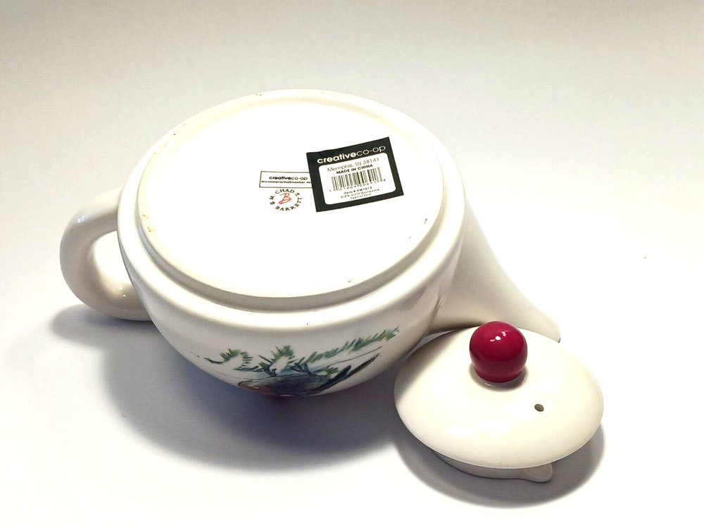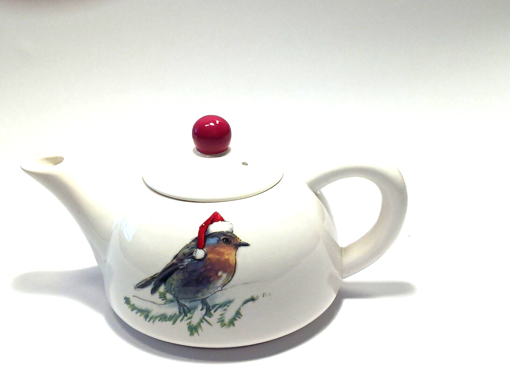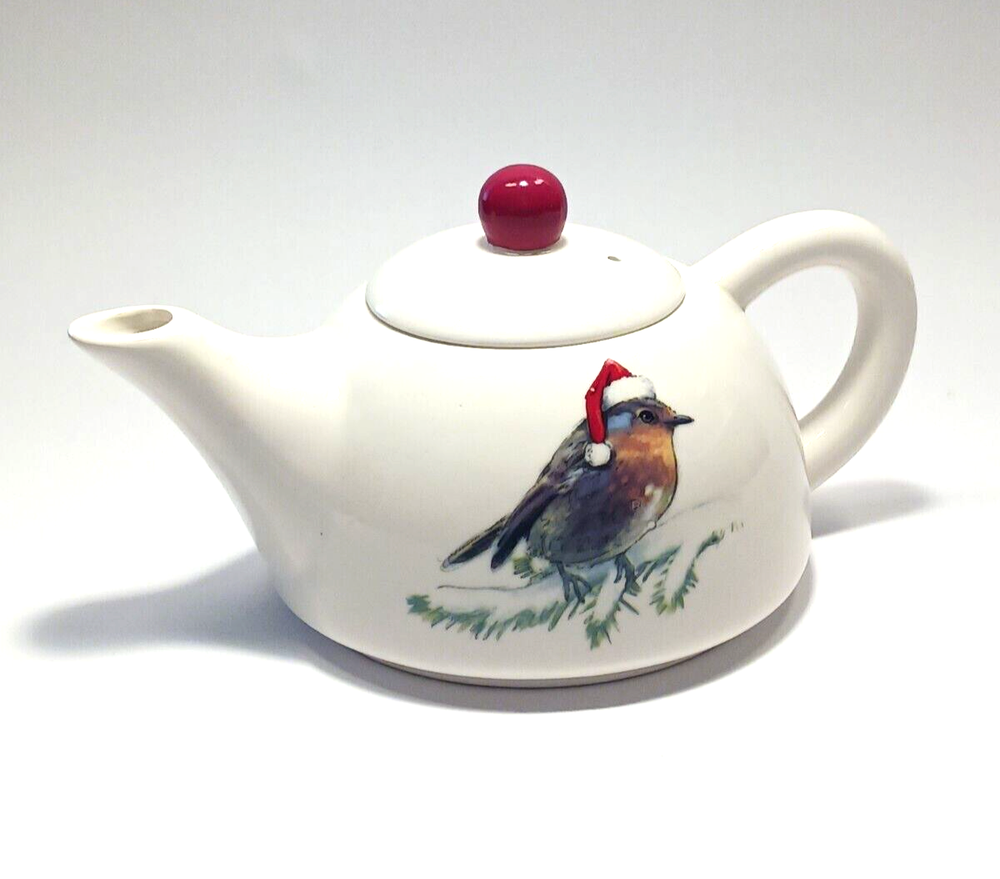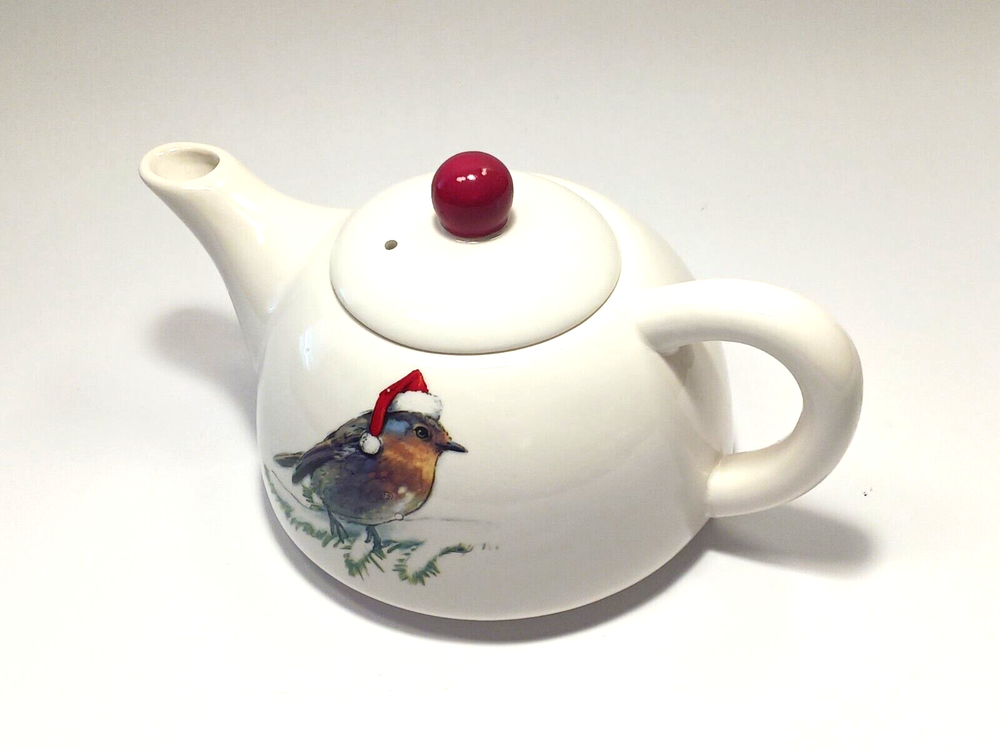 Holiday Stoneware 4" tall Teapot for one by Creative Co-op The pot measures approx. 3 1/2" tall, 7 1/2" long and 4 3/4" in diameter. Cute tea pot. New excellent condition....
