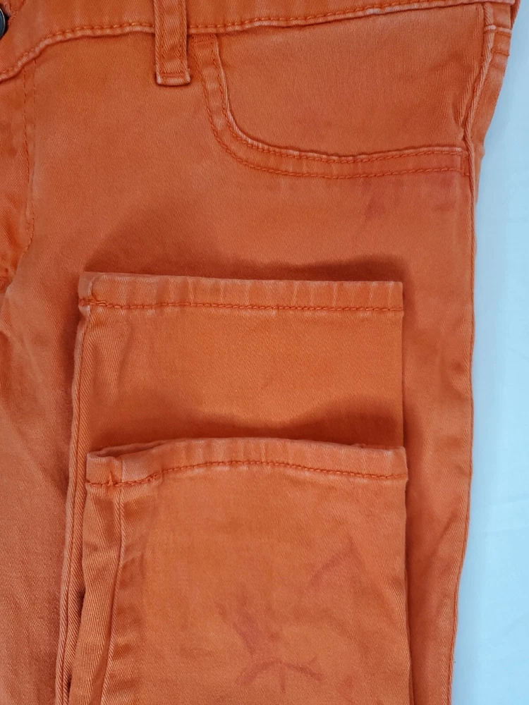 These Hollister skinny jeans are super comfy and fit perfectly! The stretchy material makes them easy to move in, and the bright orange color is so fun. They look barely worn and came clean—great find for the price!