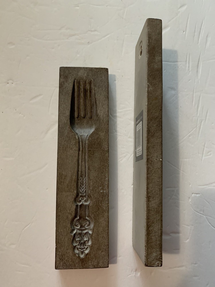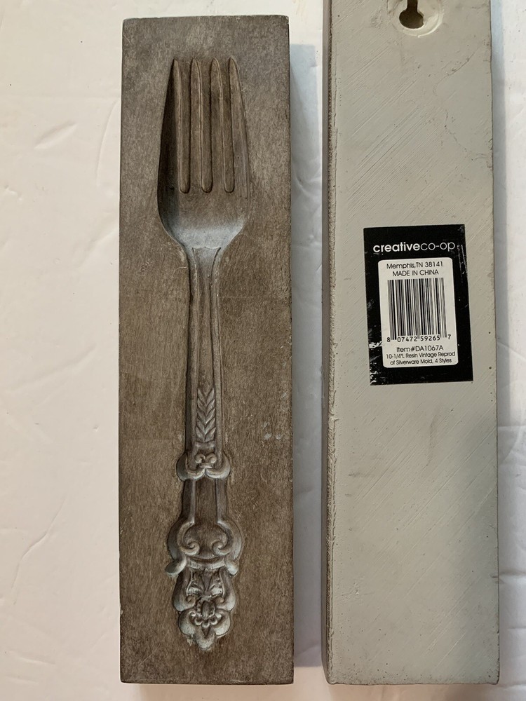 Add a touch of elegance to your home decor with this beautiful resin plaque featuring a silverware mold design. Measuring 10x2x1 inches, this rectangular plaque is perfect for displaying in any room. The gray color and silverware pattern make it a great addition to any theme, while the relief feature adds a unique touch to the overall design. Crafted by Creative Co Op, this plaque is made of high-quality resin material. The knife and fork subject adds a touch of sophistication to the piece, making it a great decorative item for adults. This plaque is not only stylish but also functional, making it a perfect addition to any home.