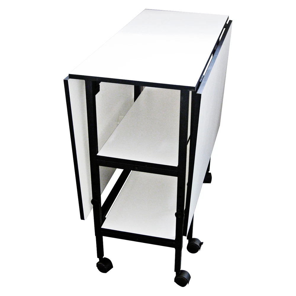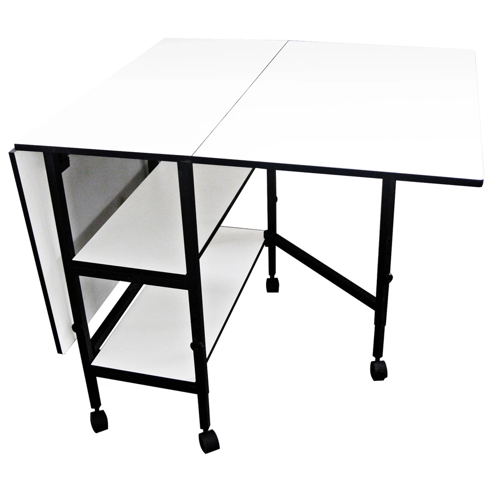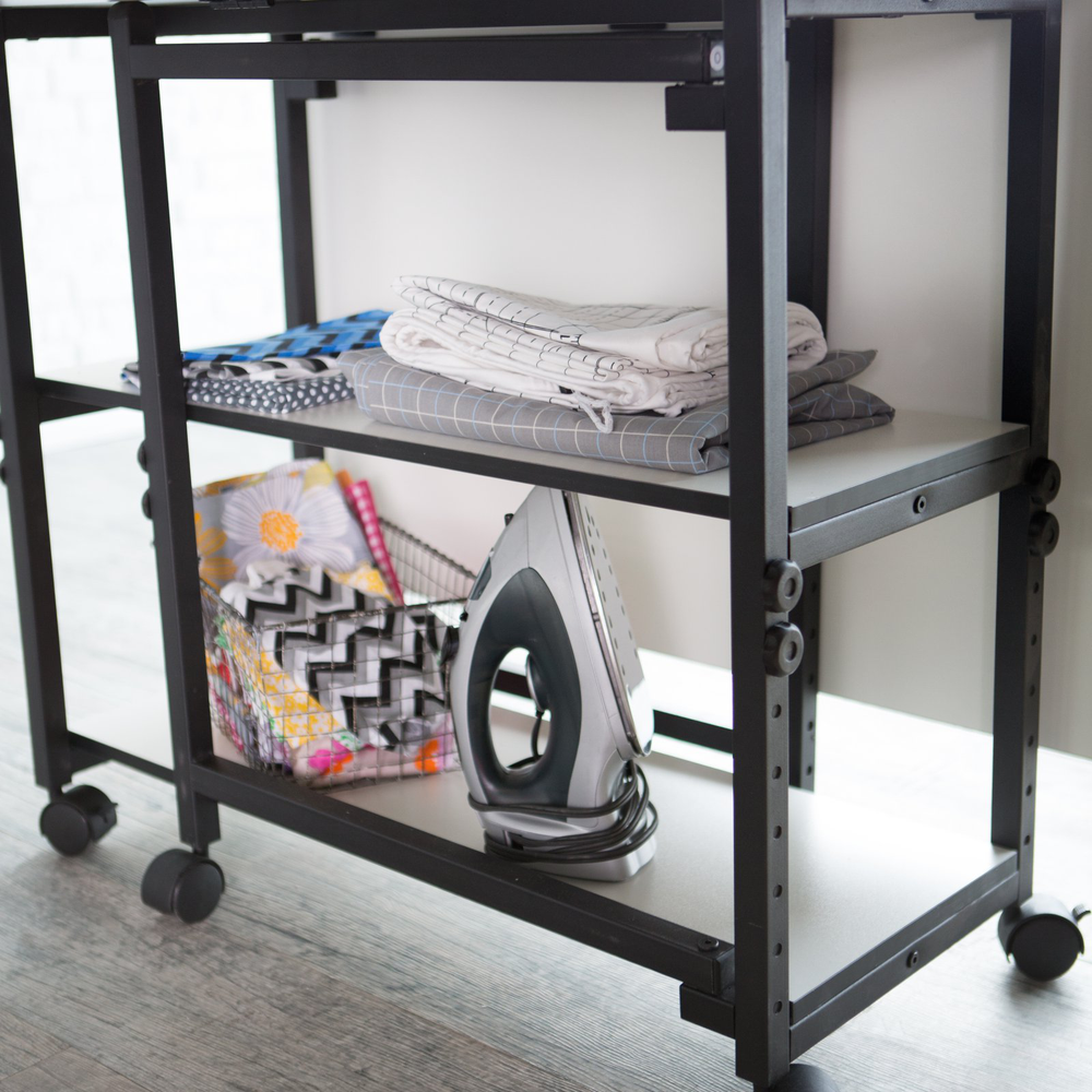 Sullivans Home Hobby Adjustable Height Foldable Table for Sewing and Crafts The Sullivans USA home hobby adjustable height foldable table is designed to make craft time more enjoyable. It enables you to sit or stand while you work and the height can be adjusted from 29″ to 38″ or at intervals in between. The Sullivans adjustable home hobby table is constructed of heavy-duty tubular steel and is made to last. It features two integrated shelves to keep supplies and tools close at hand. The durable, laminated surface protects from damage and dust. Fold-down one wing of the adjustable height craft table to create a smaller working surface. When you’re through, the metal frame collapses to a slim profile and easily rolls away on tough, locking casters. Made from heavy-duty tubular steel Lets you sit or stand while you work Assembly required Imported Adjustable height craft table with 11.5" x 35" integrated shelves Rolls away on tough, locking casters Ideal for crafting, sewing and quilting projects Powder-coated steel frame for rust and corrosion resistance