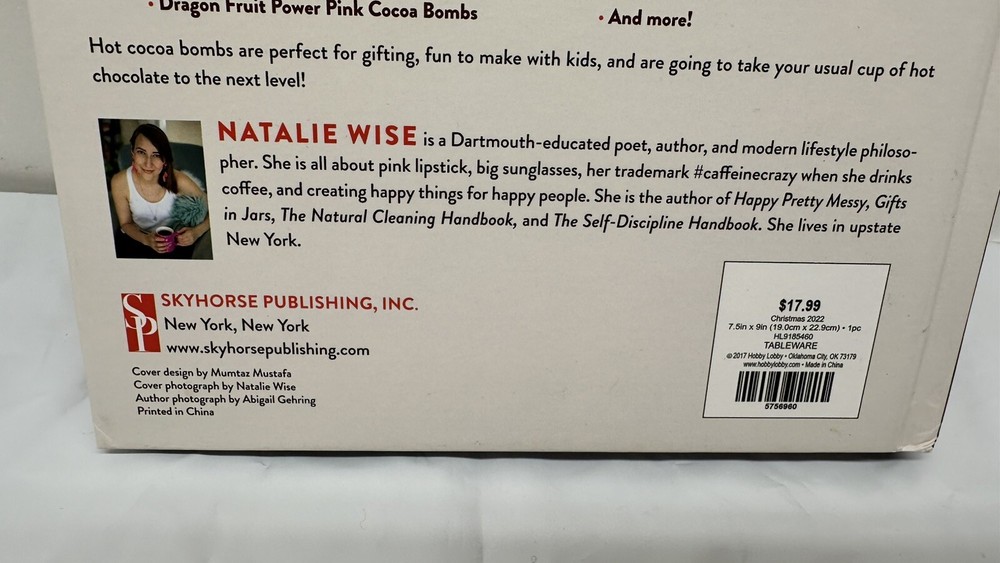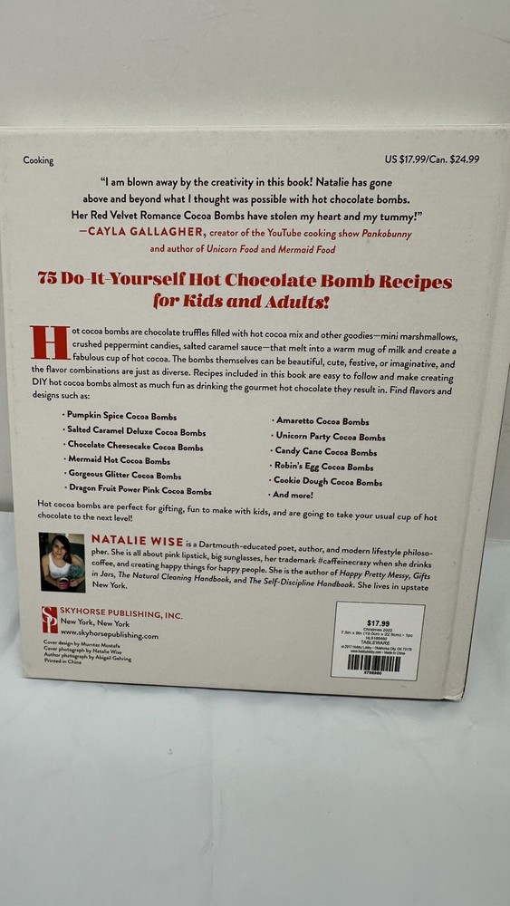 The product is a hardcover book titled "Hot Cocoa Bombs: Delicious, Fun, and Creative Hot Chocolate Treats" by Natalie Wise. Published by Skyhorse Publishing Company, it features 200 pages filled with recipes and illustrations for making hot cocoa bombs, perfect for holiday indulgence. The book includes creative ideas for hot chocolate treats, emphasizing a fun and delicious approach to making beverages at home. The book is in English and is illustrated, making it a valuable resource for those interested in cooking and house & home topics related to seasonal and holiday-themed beverages.