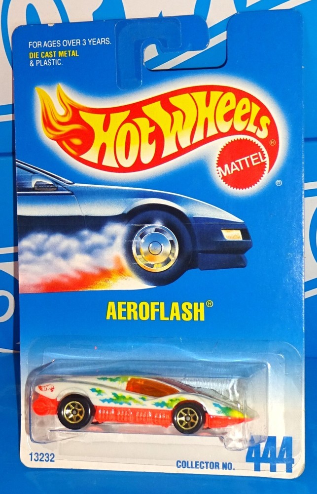 Blue Star Diecast Visit store Hot Wheels 1990s Blue & White Card Mainline #444 Aeroflash 1 diecast vehicle - Aprox 1:64 Scale Release: White, flour orange base, gold 7SPs - plastic body / metal base casting Board shows bending / creases on lower right side middle edge to bottom, corner / edge marks & dings, soft bottom right corner All cars shipped in boxes - no bubble mailers used We combine shipping - please check the Shipping Details Shipping All items are shipped with USPS Mail unless specified in the ad. All items shipped within 1-2 business days Mon-Fri excluding holidays, customers will be notified of any majors delays. Shipments to buyers outside the United States may be subject to local tariffs, taxes and brokerage fees. Please be aware of your country import fees before bidding or purchase as our shipping fees only include transport - All other fees are responsibility of the buyer