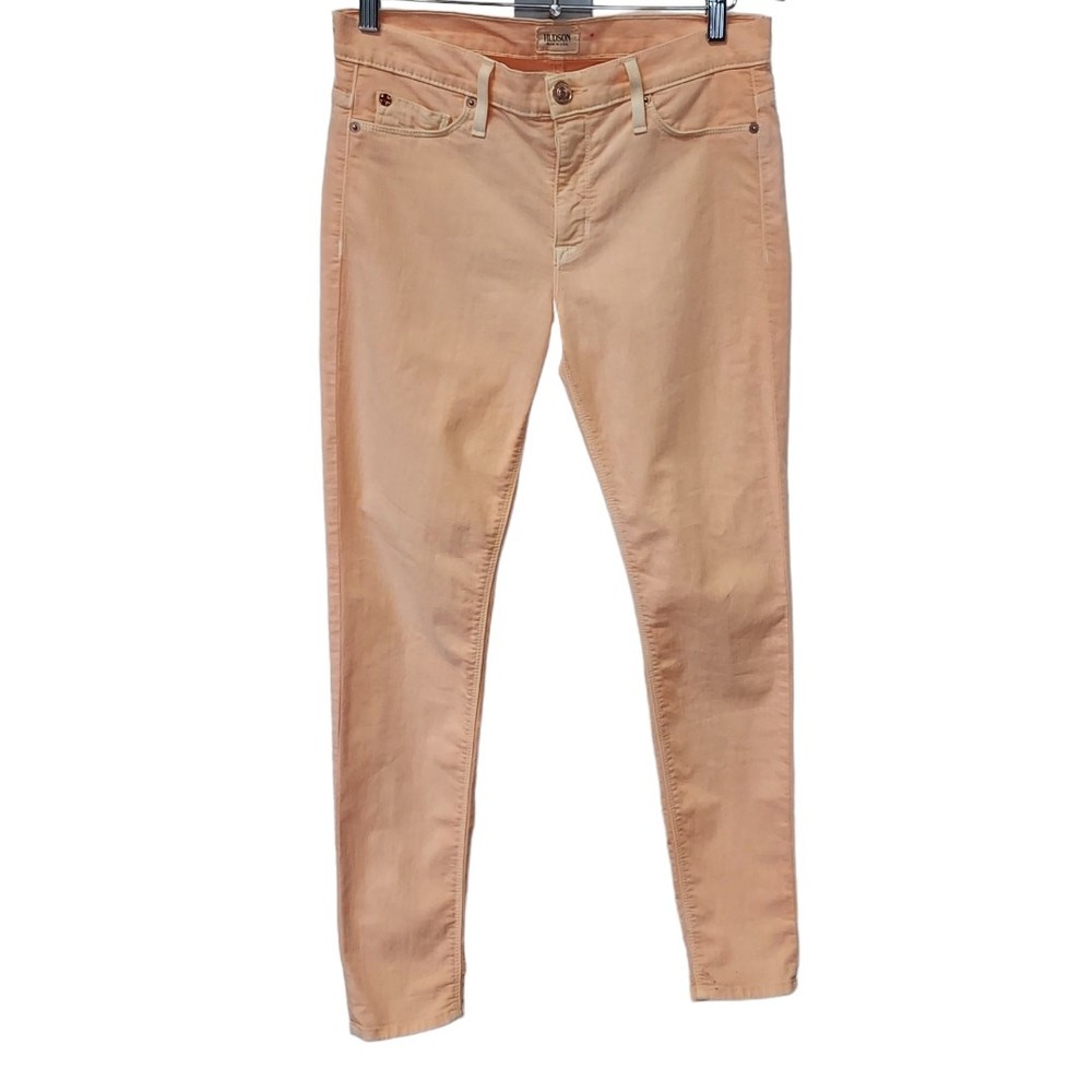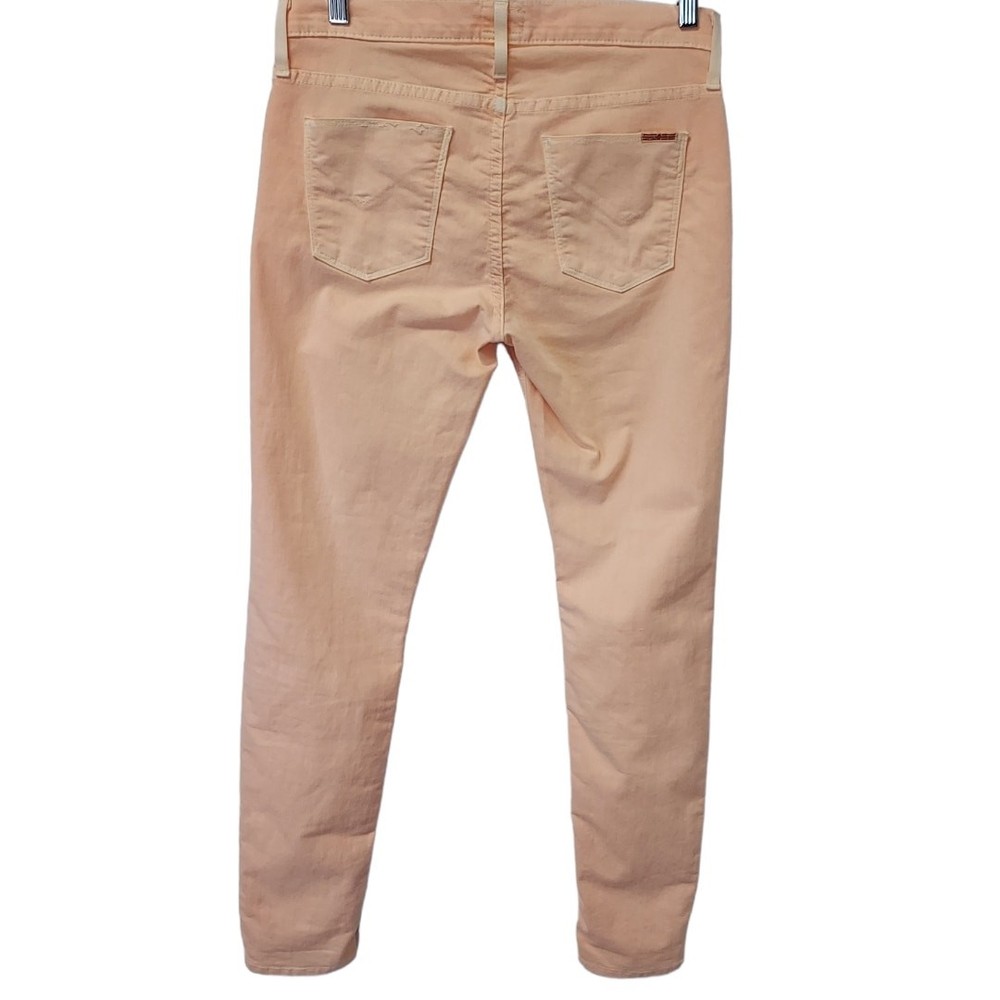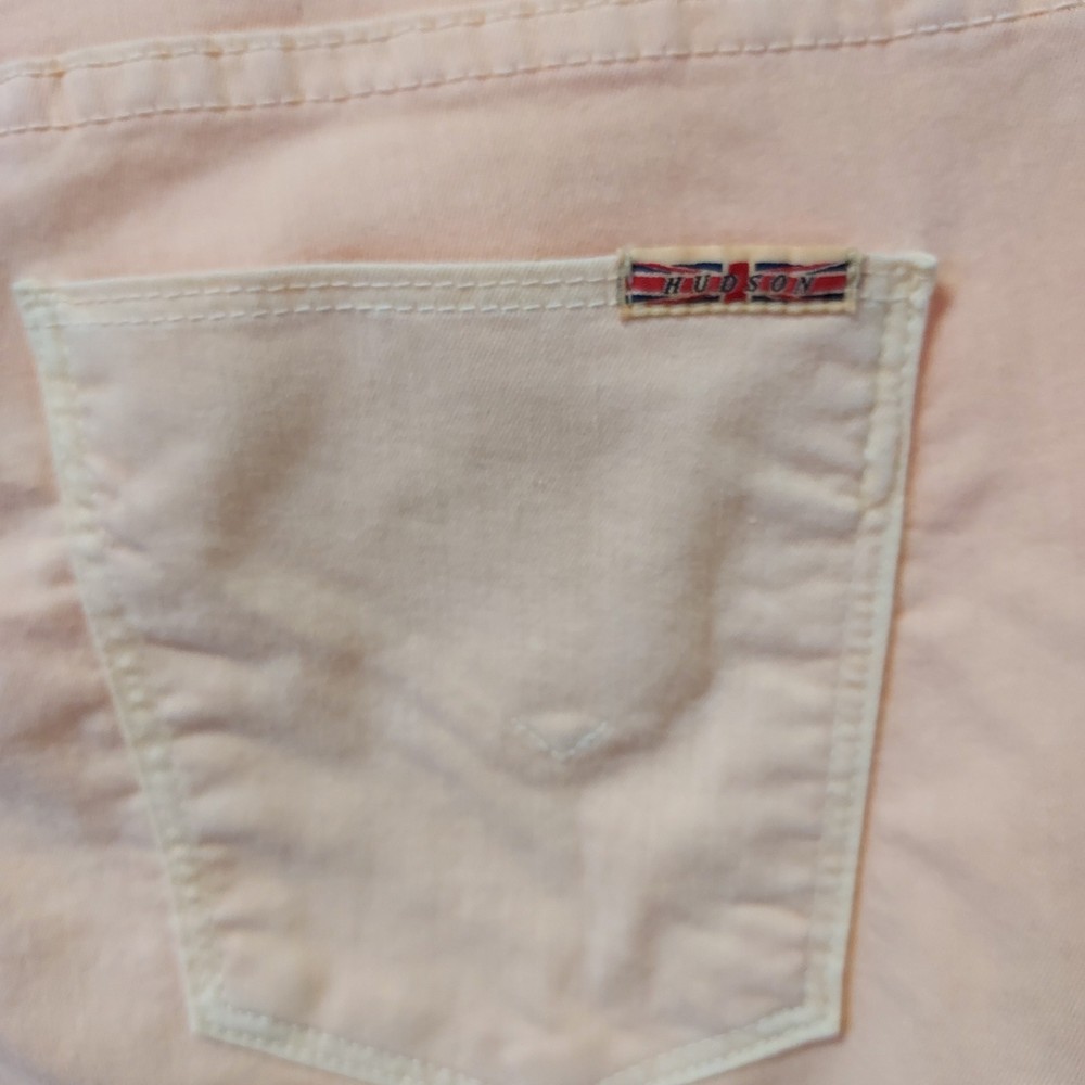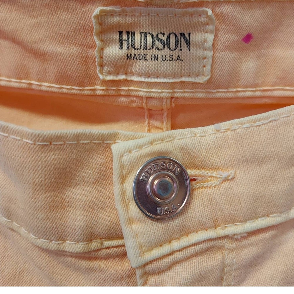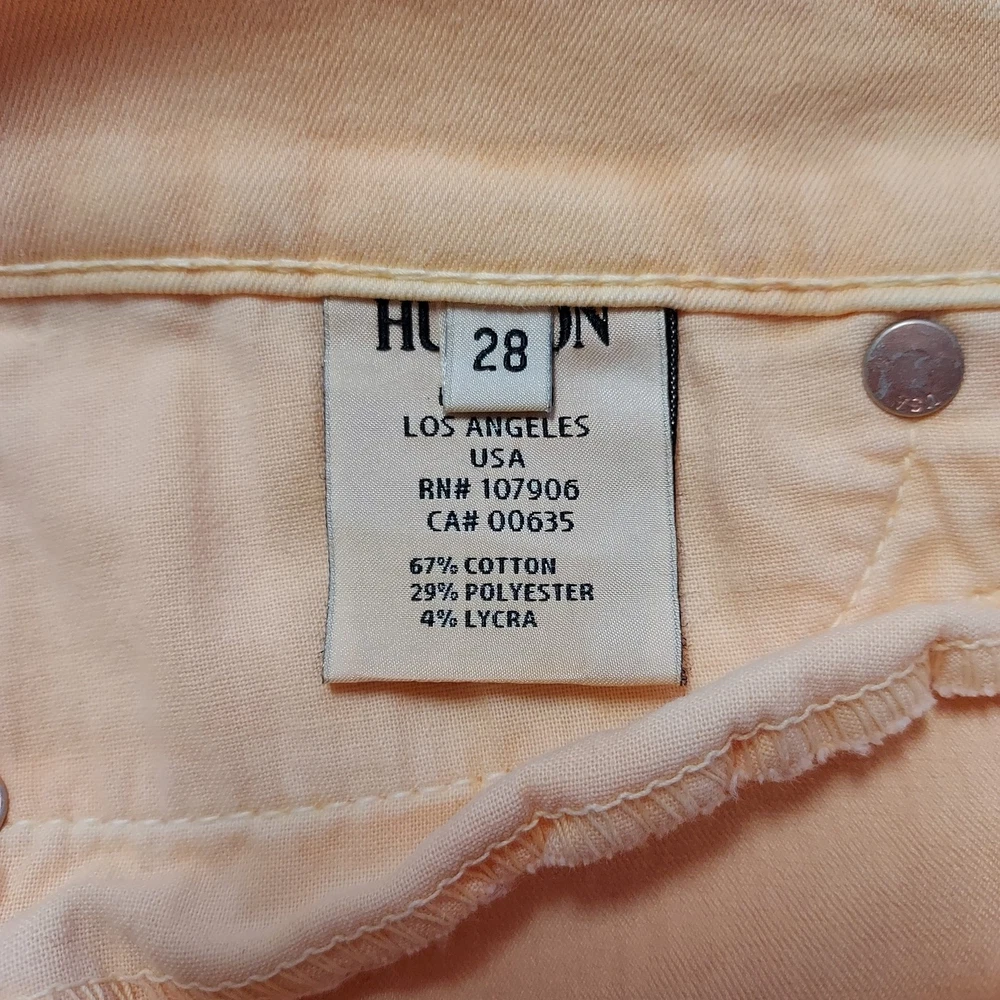 <![CDATA[<div>Hudson Nico Mid Rise Super Skinny Peach jean pants Features: Super skinny mid rise Color: light peach orange 5 pocket Hudson logo tag on front pocket Hudson tag on back pocket Material: Cotton, polyester, lycra blend Retail $185 Condition: Excellent pre-owned *Pull on thread on back left pocket (see pic) Size & Approx Flat Measurements: Size – 2 (28" waist) Rise – 9” Inseam – 29” OFFERS WELCOME - BUNDLE & SAVE SHIPS SAME or NEXT DAY 5-STAR RATED - TOP SELLER tags: denim jean skinny summer peach orange Hudson England britain designer spring casual cool fun garden tea sku C142