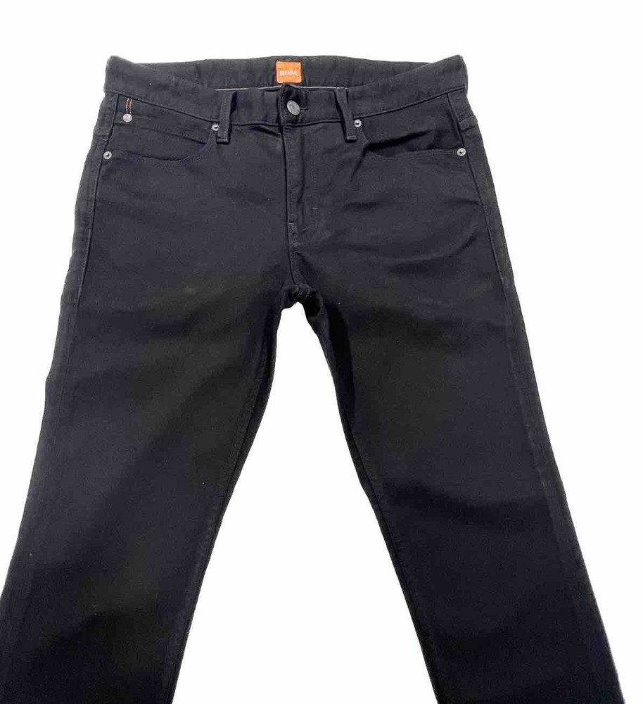 Elevate your denim game with these Hugo Boss Orange black jeans. The cotton blend fabric with indigo dark wash treatment gives a stylish yet comfortable fit for any season. The 5-pocket design with zip closure and mid-rise offers a classic look with a touch of modern stretch straight style. Machine washable for easy garment care, these regular fit jeans are perfect for any occasion, whether it's a night out or a casual day. Don't miss out on adding these versatile jeans to your wardrobe. Cotton 99% Elastane 1%