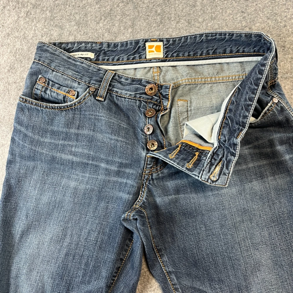 This item has been gently used but is in good condition. Any flaws will be shown In the photos. Freshly Laundered. Tag 34/32 better suited 32/30 Save a small fortune buying these Pre Loved Hugo Boss Jeans.. All measurements are in inches with the item laid flat (See Photos) If you have any questions I try to respond instantly.. Orders shipped daily. Same day If bought and paid by 11am! Please see my other items, combine shipping on multiple orders :)