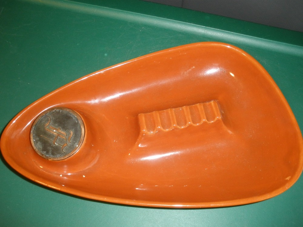 Hyde Park USA 1981 Meteor Orange 11.5"x7" Ashtray Mid Century EUC Not sure what letter is in the tray-looks like it can be an H, F, or A-you decide Smoke free house...