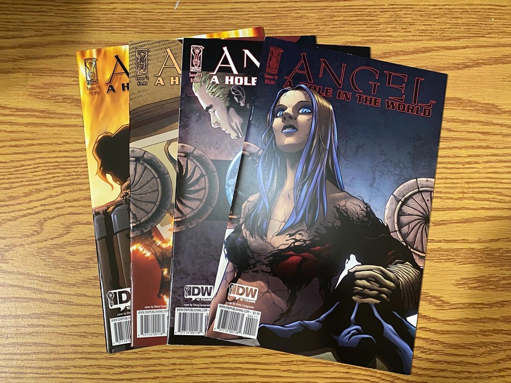 Up for purchase is an IDW “Angel: A Hole in The World” Complete 4 issue Comic Set, published in 2009. Based on the episode of the same name and plot from Season 5 of Joss Whedon’s “Buffy The Vampire Slayer” spin-off, “Angel”, this 4 issue set covers the entire episode’s storyline. All four issues are in excellent condition with minimal reader wear on the covers of issues #1 and #2. These are from my personal collection and have been well-stored and taken care of over the years. I am in the process of adjusting and downsizing some collections.